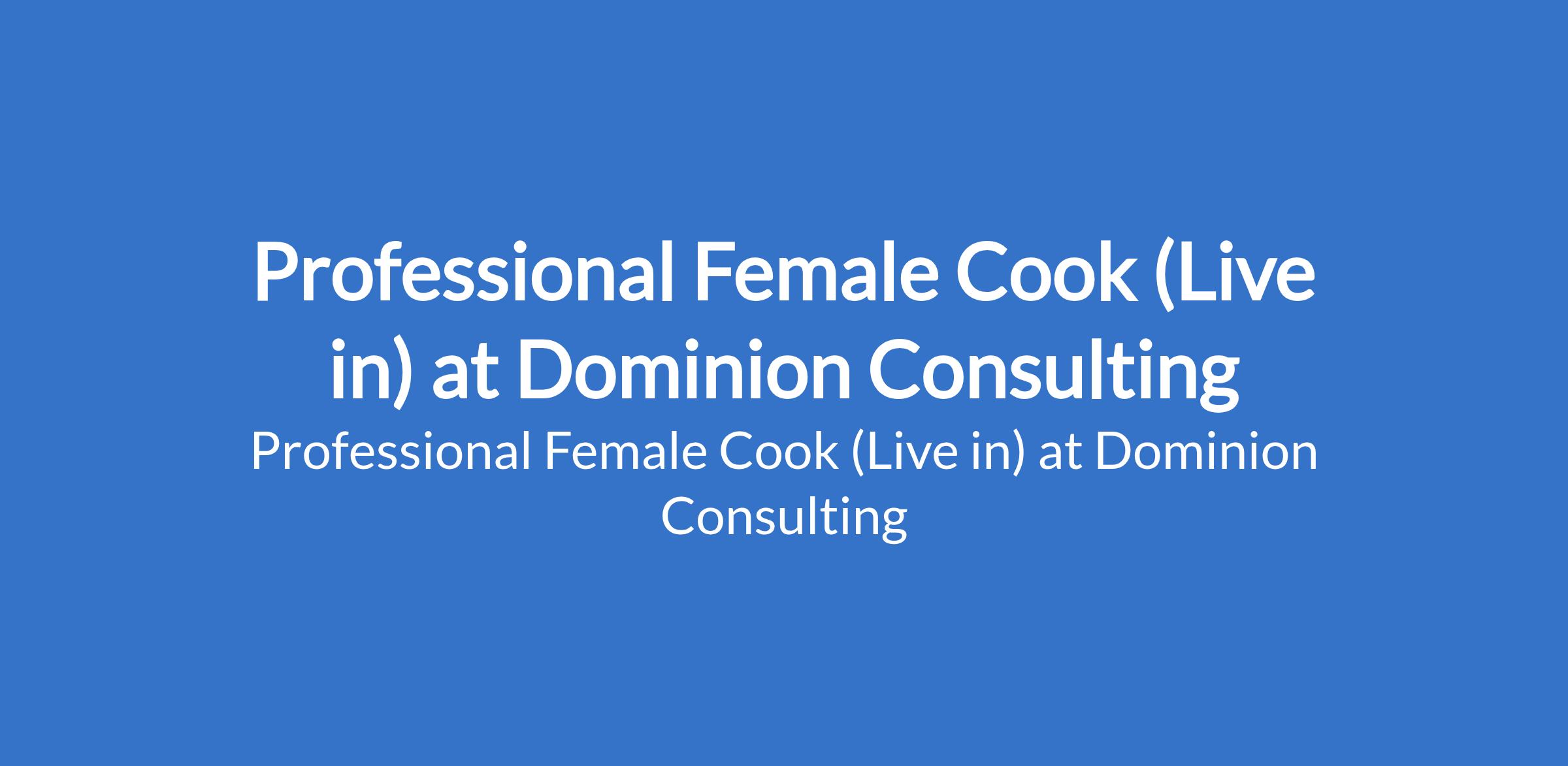 Dominion Consulting is recruiting to fill the position of: Professional Female Cook (Live in). The position is located in Jahi, Abuja (FCT). Salary: N150,000 monthly. Interested candidates should possess relevant qualifications and must live within Abuja.
