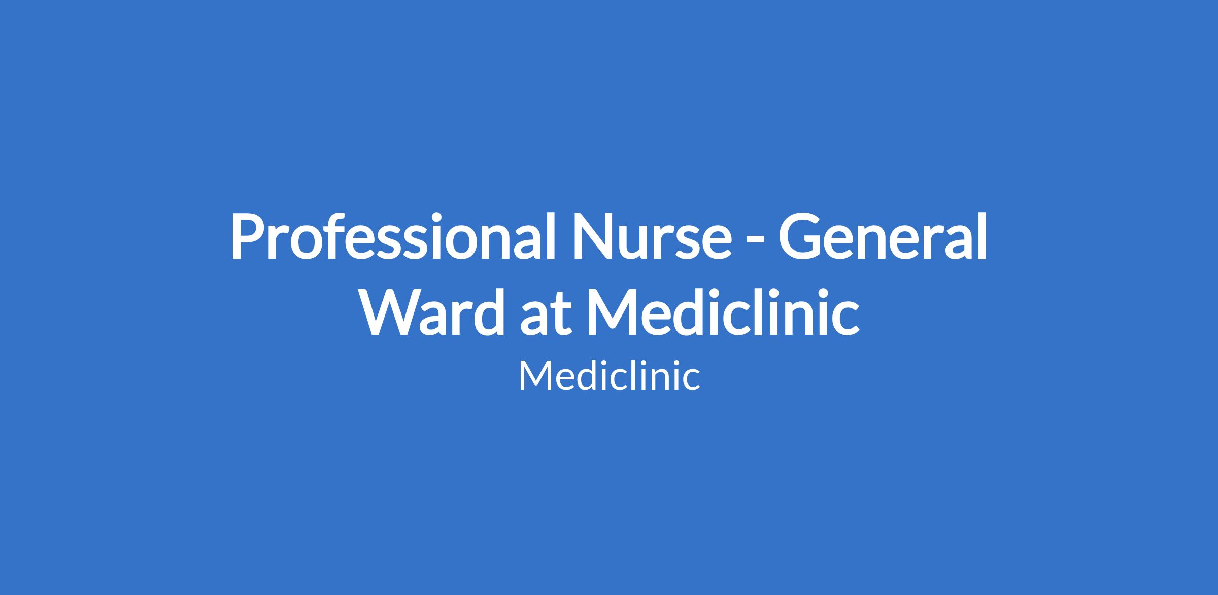 Professional Nurse - General Ward at Mediclinic