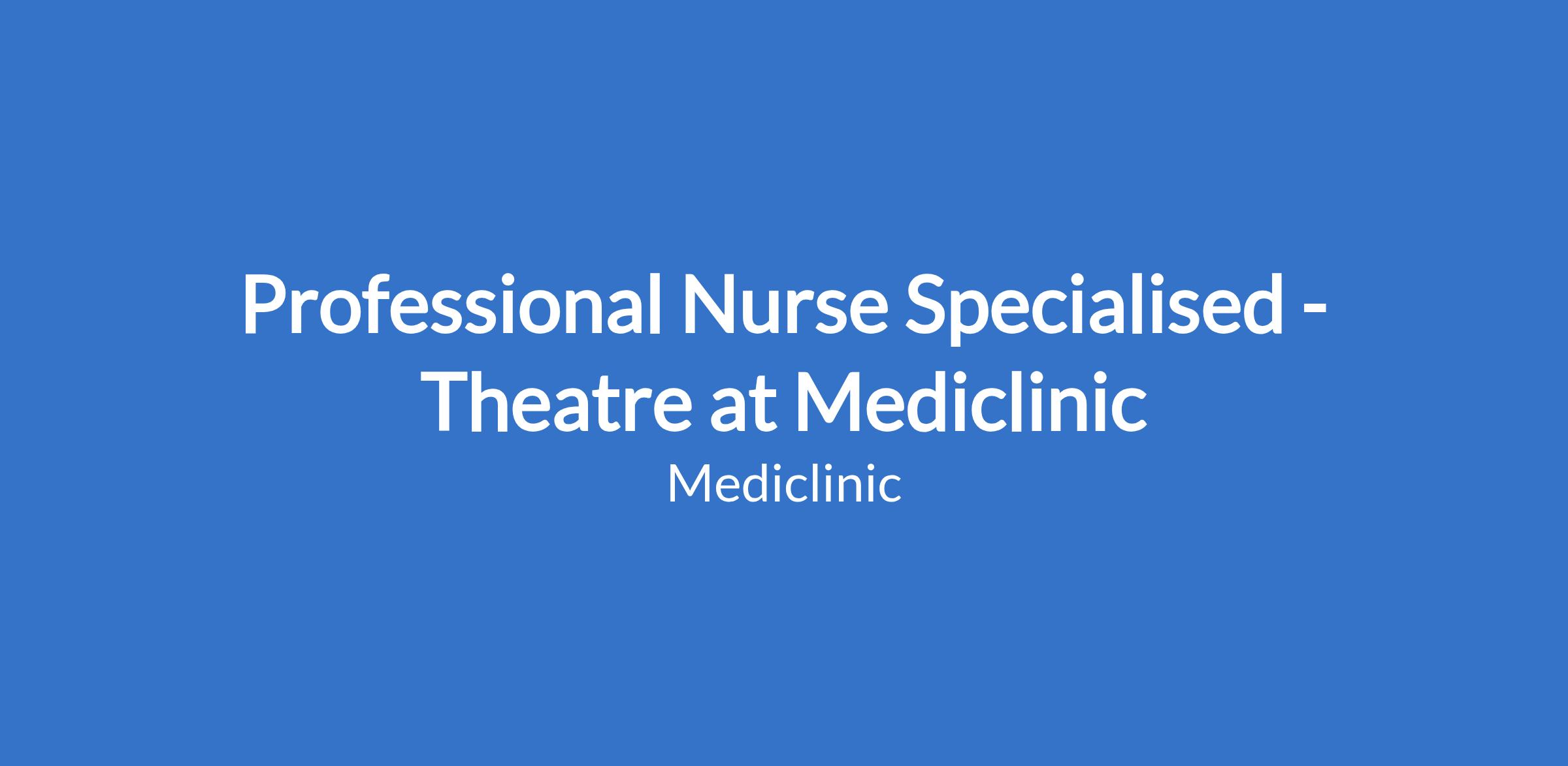 Professional Nurse Specialised - Theatre at Mediclinic