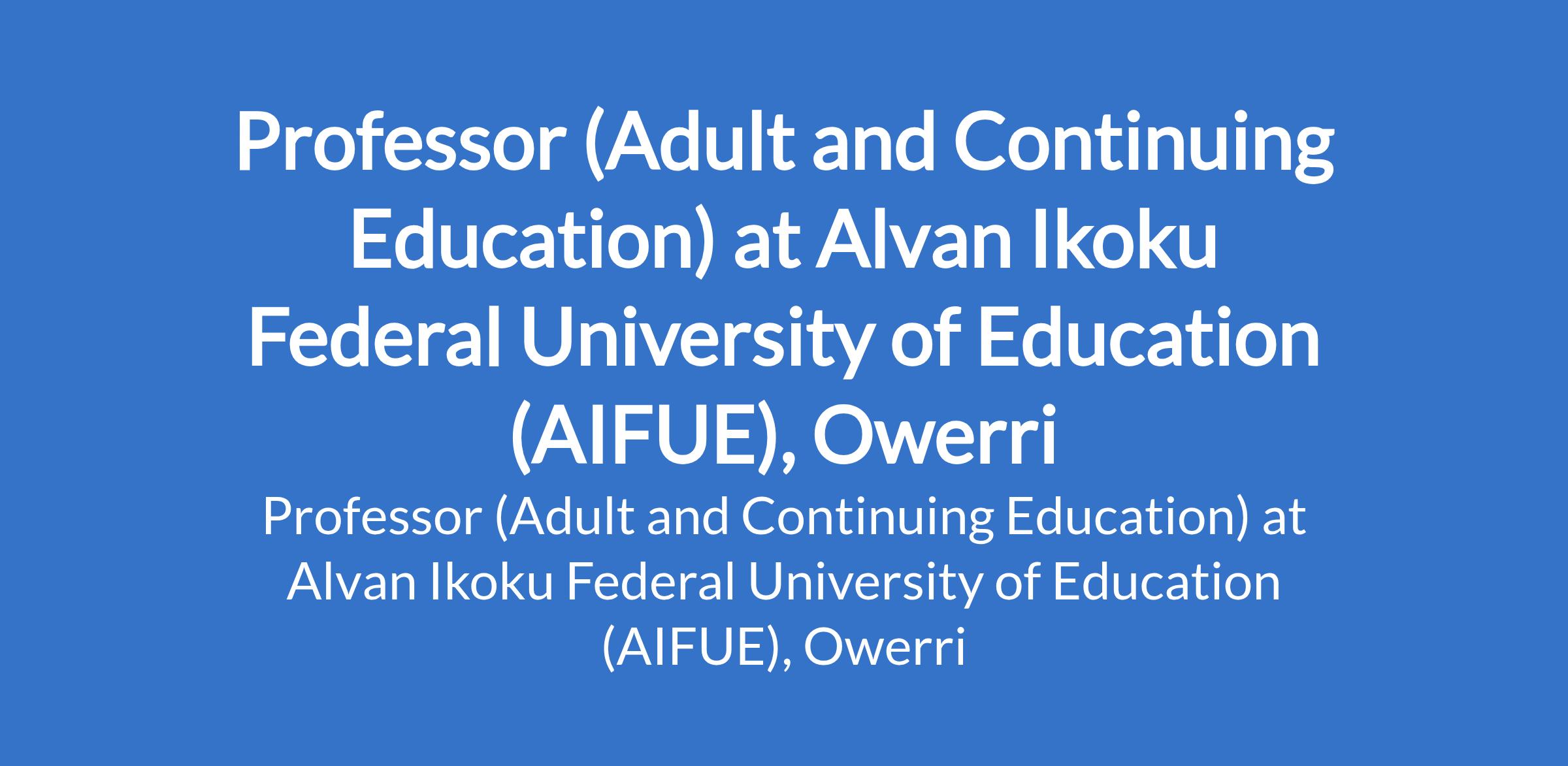 Alvan Ikoku Federal University of Education (AIFUE), Owerri invites applications from suitably qualified candidates for the position of: Professor (Adult and Continuing Education). The position is located in Imo State. Interested candidates should possess a PhD Degree in the relevant discipline with a minimum of three (3) years as Reader (Associate Professor) and fifteen (15) years of university teaching and research experience.