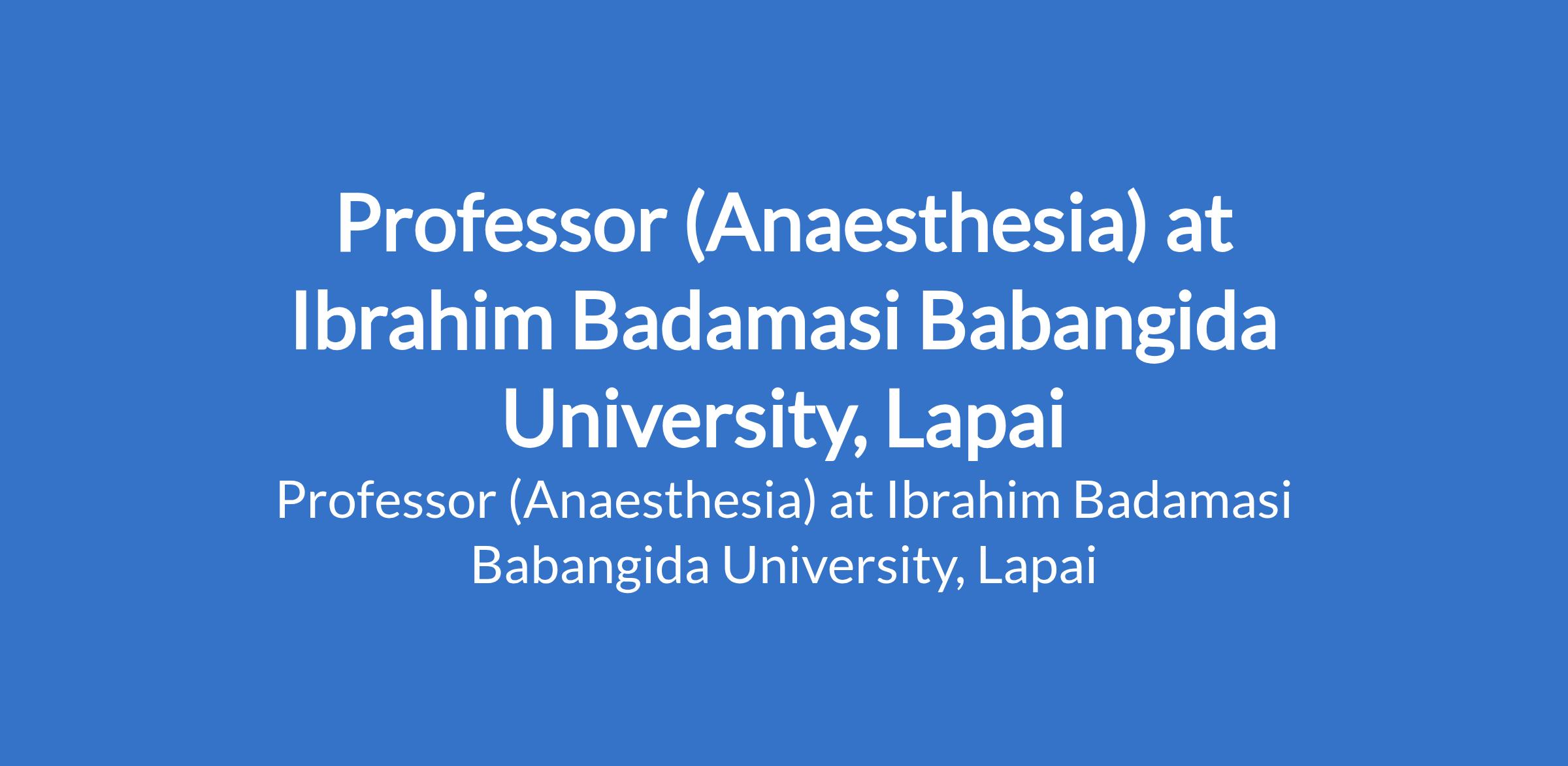Ibrahim Badamasi Babangida University, Lapai invites applications from suitably qualified candidates to fill the position of: Professor (Anaesthesia). The position is located in Niger State. Interested candidates should be holders of MBBS Degree from recognized Universities with PhD, Fellowship of the National Postgraduate Medical College of Nigeria or its equivalent in the relevant specialty/sub specialty with at least twelve (12) years teaching, research and administrative experience in a tertiary institution.