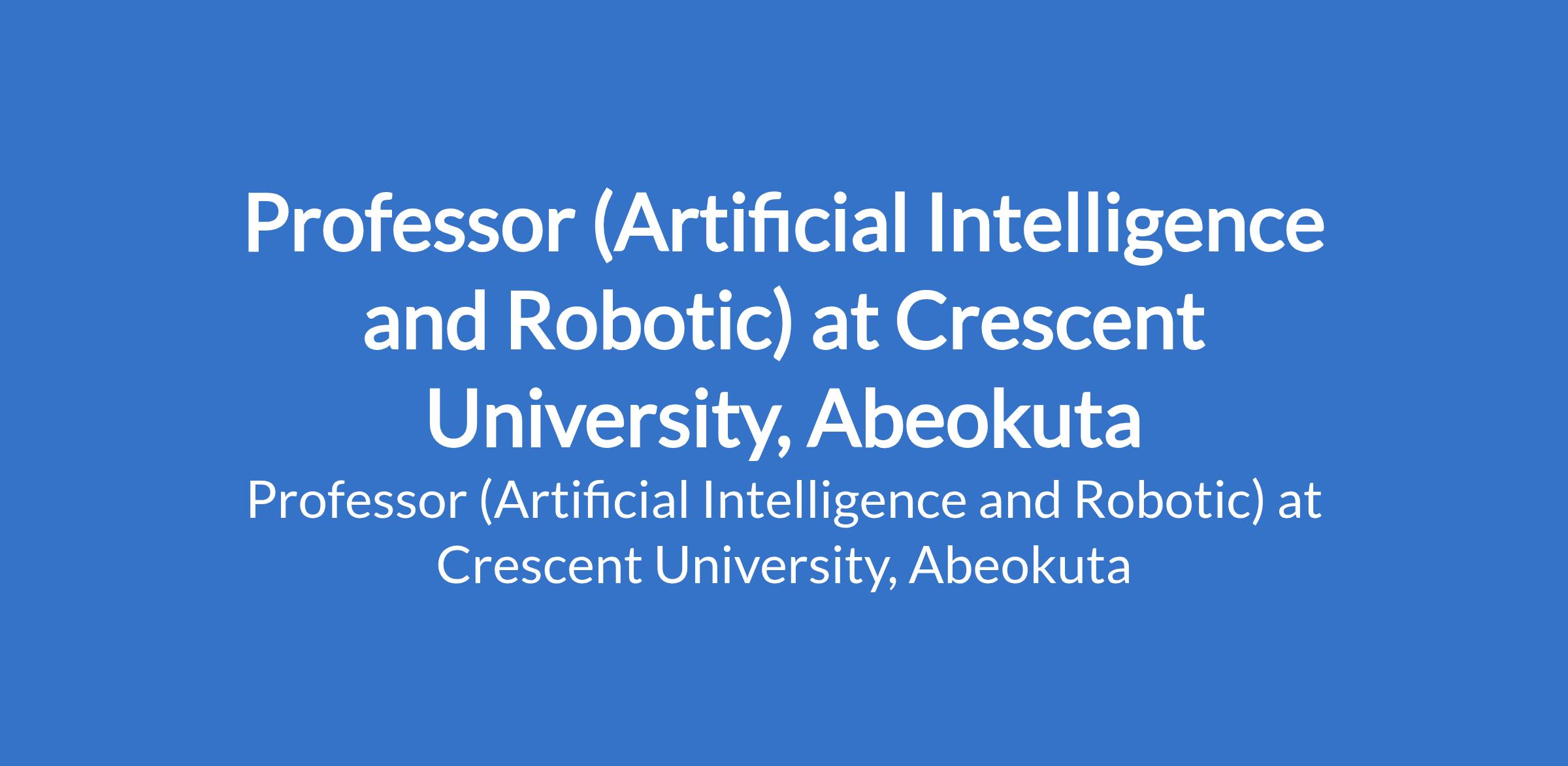 Crescent University, Abeokuta invites applications from suitable candidates to fill the position of: Professor (Artificial Intelligence and Robotics). The position is located in Ogun State. Interested candidates should possess a PhD Degree in computing with enough evidence of teaching publication and research experience in the area of computing being applied for, plus all other conditions /requirements that the Office Of the Registrar Will be expected to include as required by Crescent University on professorial appointments.