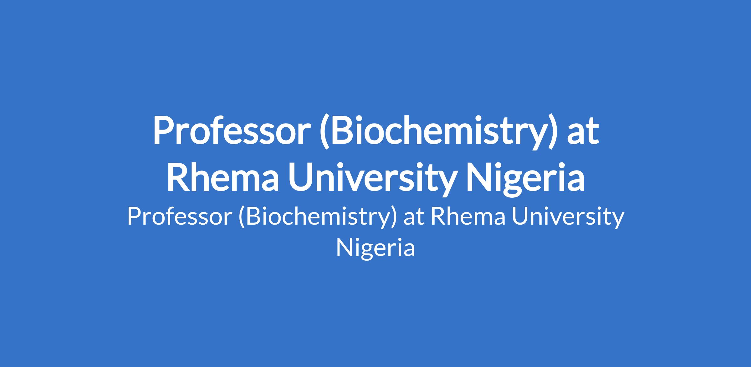 Rhema University Nigeria invites applications from suitably qualified candidates for the position of: Professor (Biochemistry). The position is located in Aba, Abia State. Interested candidates should possess a Ph.D Degree with ten years post qualification experience in Biochemistry, and acceptable number of publications.