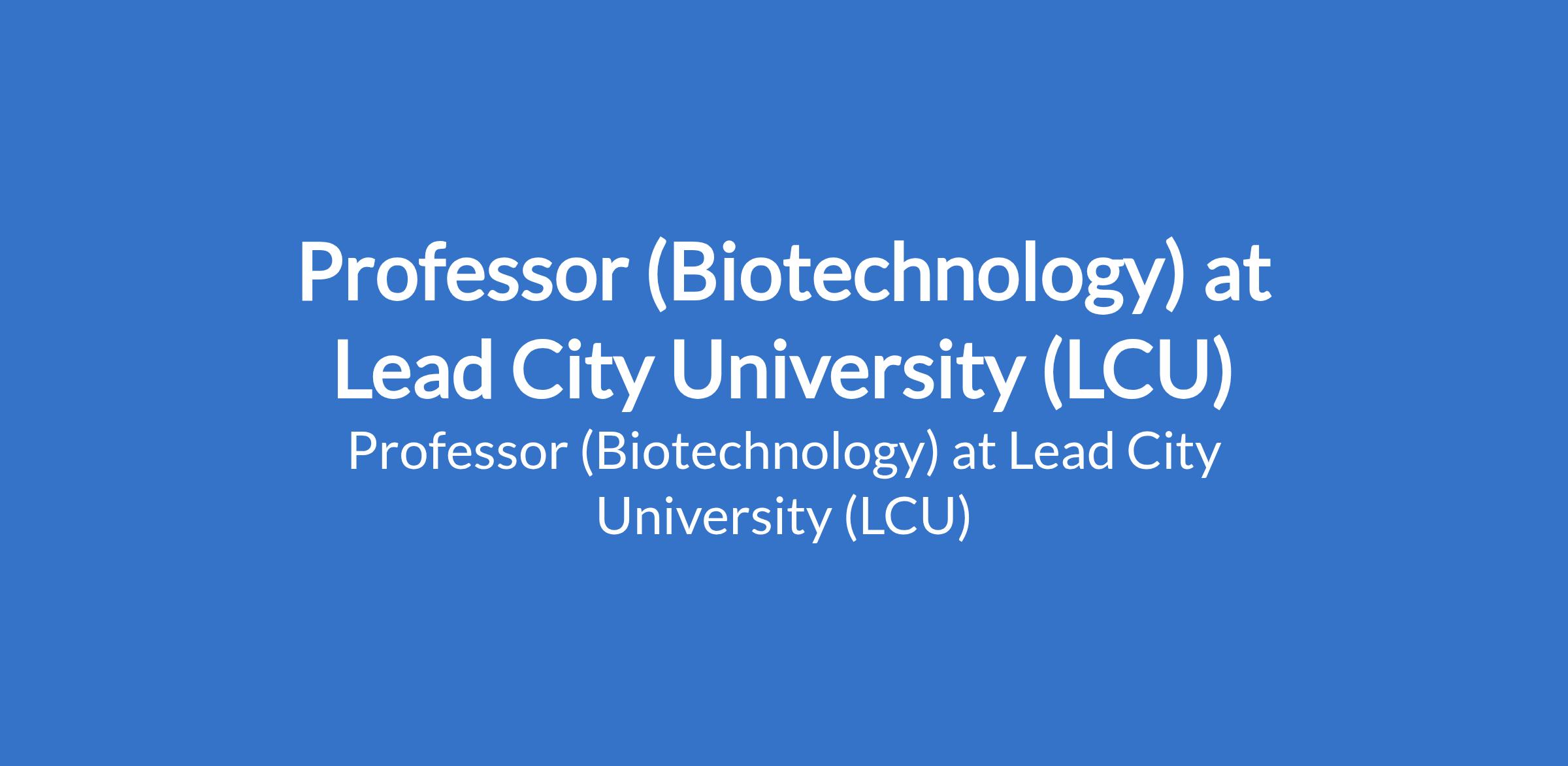 Lead City University (LCU) invites applications from suitable candidates to fill the position of: Professor (Biotechnology). The position is located in Ibadan, Oyo State. Interested candidates should possess a good First Degree, not below second- class lower division, from a reputable University, a Master's and PhD Degree (or MBBS plus PhD/Fellowship) in the appropriate discipline with at least 12 years of cognate experience teaching and conducting research in a recognised and reputable University.