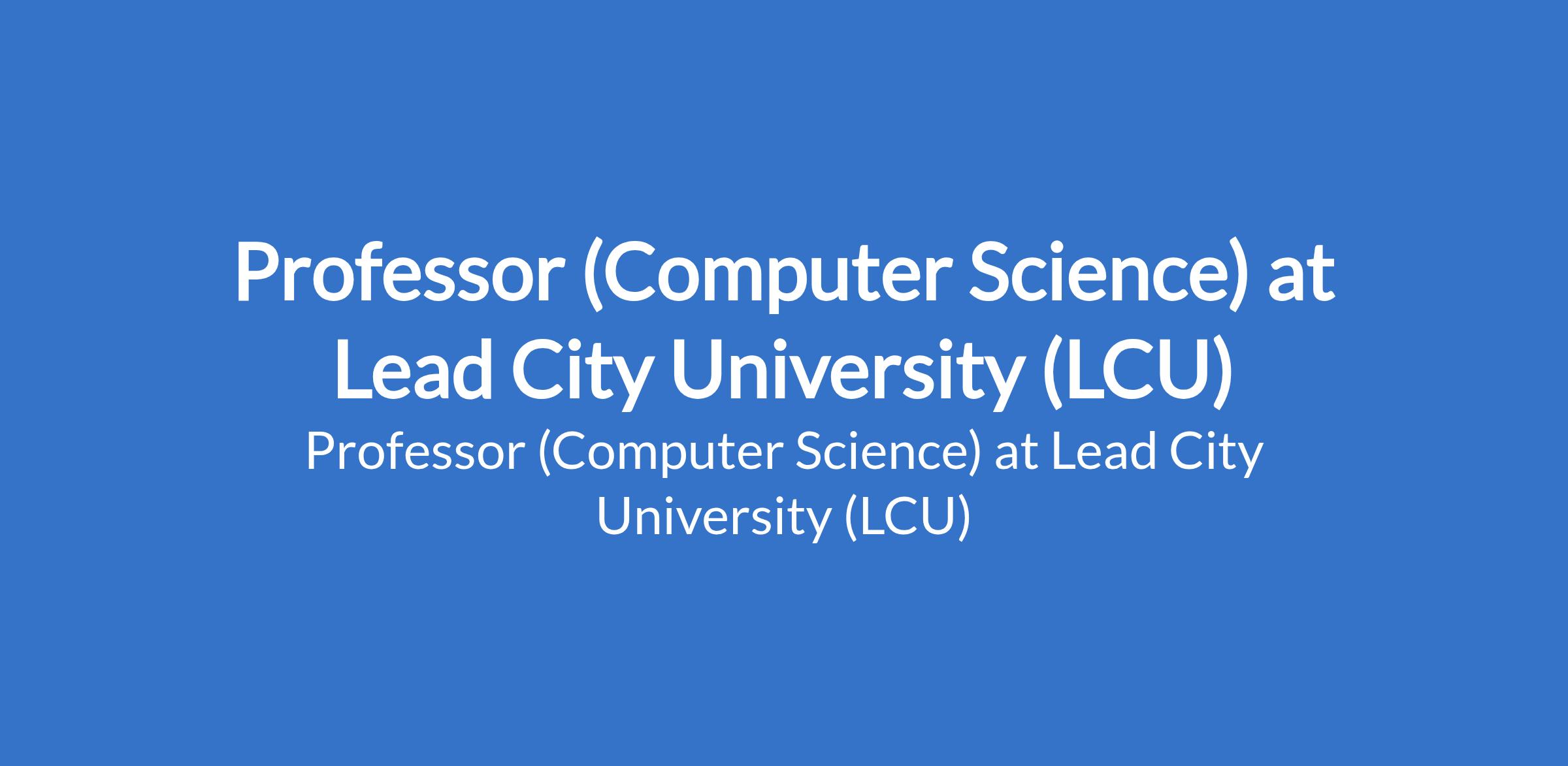 Lead City University (LCU) invites applications from suitable candidates to fill the position of: Professor (Computer Science). The position is located in Ibadan, Oyo State. Interested candidates should possess a good First Degree, not below second- class lower division, from a reputable University, a Master's and PhD Degree (or MBBS plus PhD/Fellowship) in the appropriate discipline with at least 12 years of cognate experience teaching and conducting research in a recognised and reputable University.