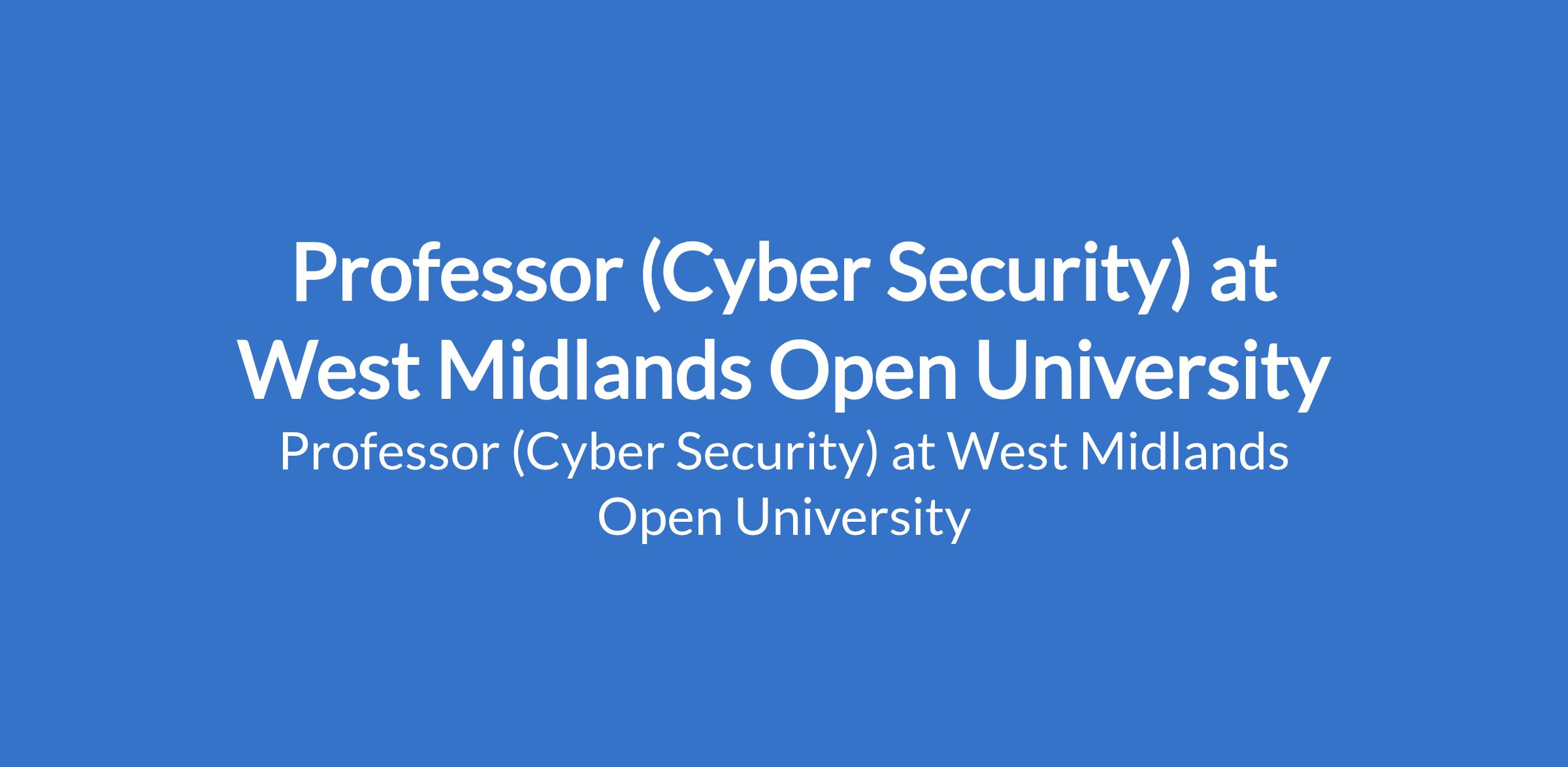 West Midlands Open University invites applications from suitable candidates to fill the position of: Professor (Cyber Security). The position is located in Ikeja, Lagos State. Interested candidates should be an Associate Professor or its equivalent with at least three years of experience; but for direct appointment from Senior Lecturer to Professor, at least six years as a Senior Lecturer or equivalent post.