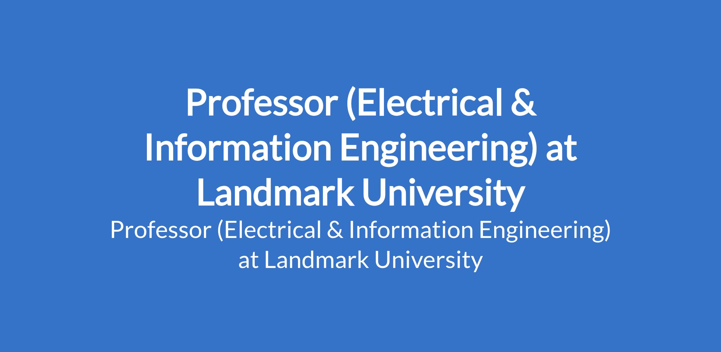 Landmark University invites applications from suitable candidates to fill the position of: Professor (Electrical & Information Engineering). The position is located in Omu-Aran, Kwara State. Interested candidates should possess a Ph.D. Degree with specialization in the discipline applied for with evidence of academic leadership in terms of publications, project design execution and monitoring, administrative leadership, etc. and at least 12 years of post-qualification, full time relevant teaching and research experience. College of Business and Social Sciences (CBS).