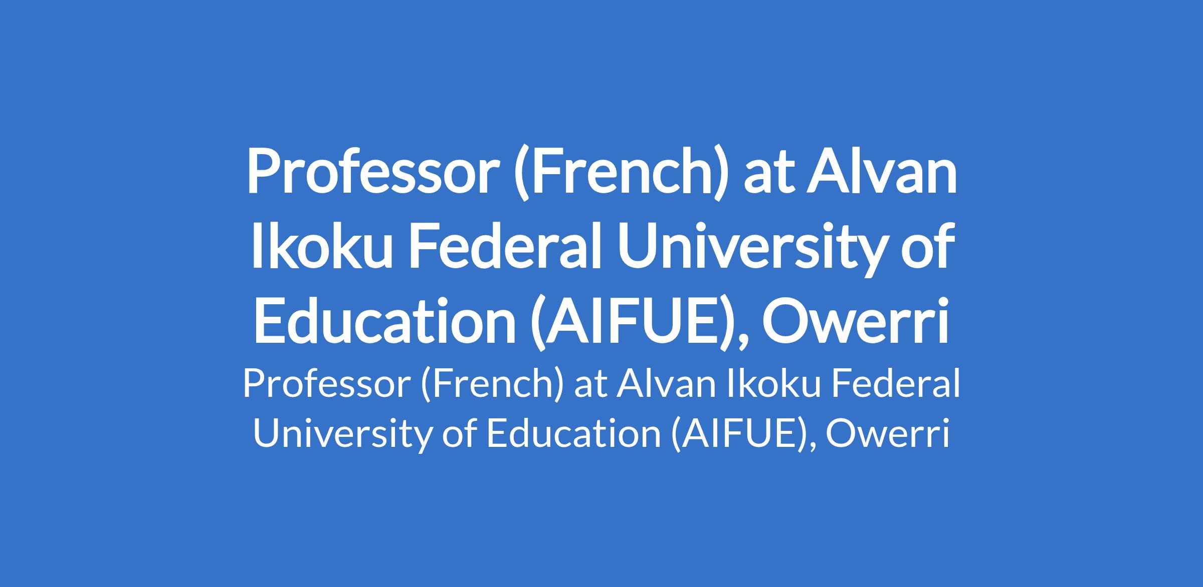 Alvan Ikoku Federal University of Education (AIFUE), Owerri invites applications from suitably qualified candidates for the position of: Professor (French). The position is located in Imo State. Interested candidates should possess a PhD Degree in the relevant discipline with a minimum of three (3) years as Reader (Associate Professor) and fifteen (15) years of university teaching and research experience.