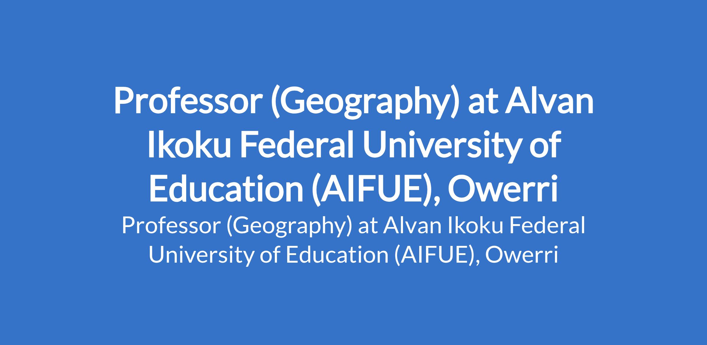 Alvan Ikoku Federal University of Education (AIFUE), Owerri invites applications from suitably qualified candidates for the position of: Professor (Geography). The position is located in Imo State. Interested candidates should possess a PhD Degree in the relevant discipline with a minimum of three (3) years as Reader (Associate Professor) and fifteen (15) years of university teaching and research experience.