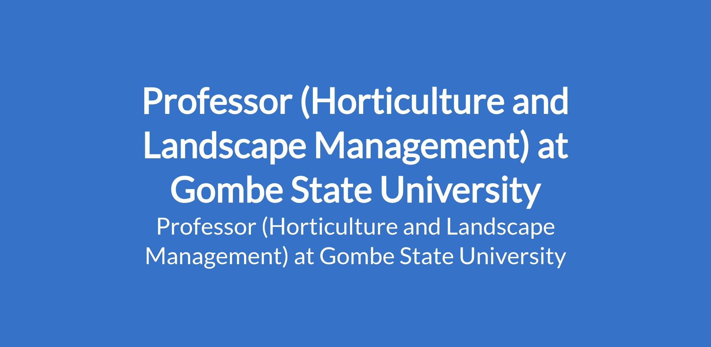 Gombe State University invites applications from suitable candidates to fill the position of: Professor (Horticulture and Landscape Management). The position is located in Tudun - Wada, Gombe State. Interested candidates should possess a Ph.D in a relevant discipline with 12 - 15 years of teaching / research experience, a minimum of three years as Reader, and at least 70 publication points with evidence of postgraduate supervision and academic leadership.