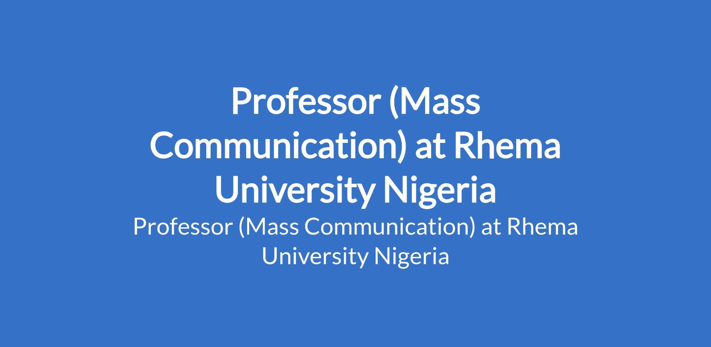 Rhema University Nigeria invites applications from suitably qualified candidates for the position of: Professor (Mass Communication). The position is located in Aba, Abia State. Interested candidates should possess a Ph.D. Degree with eight years post qualification experience and acceptable number of publications.