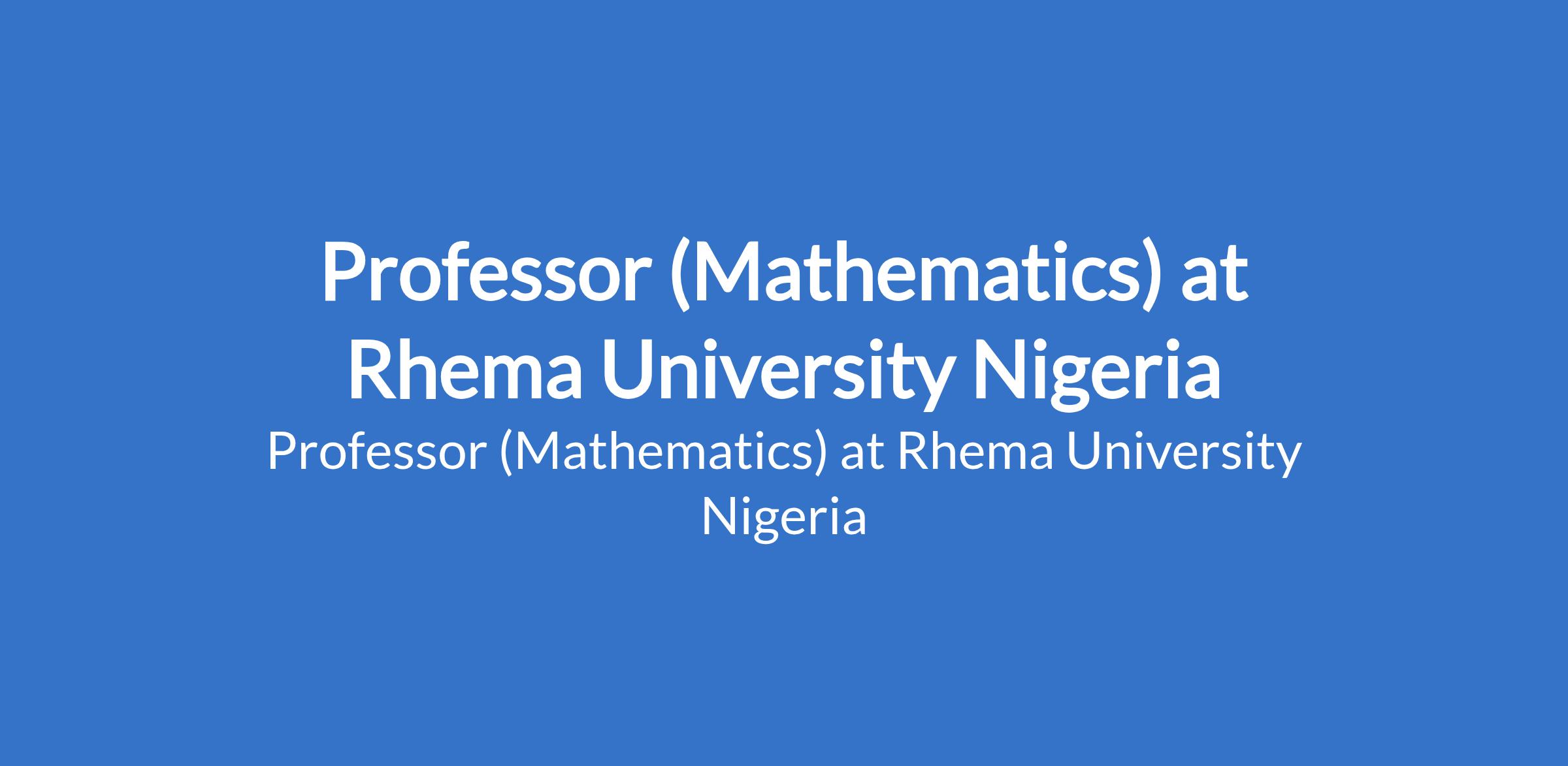 Rhema University Nigeria invites applications from suitably qualified candidates for the position of: Professor (Mathematics). The position is located in Aba, Abia State. Interested candidates should possess a Ph.D Degree with ten years post qualification experience in Mathematics, and acceptable number of publications.