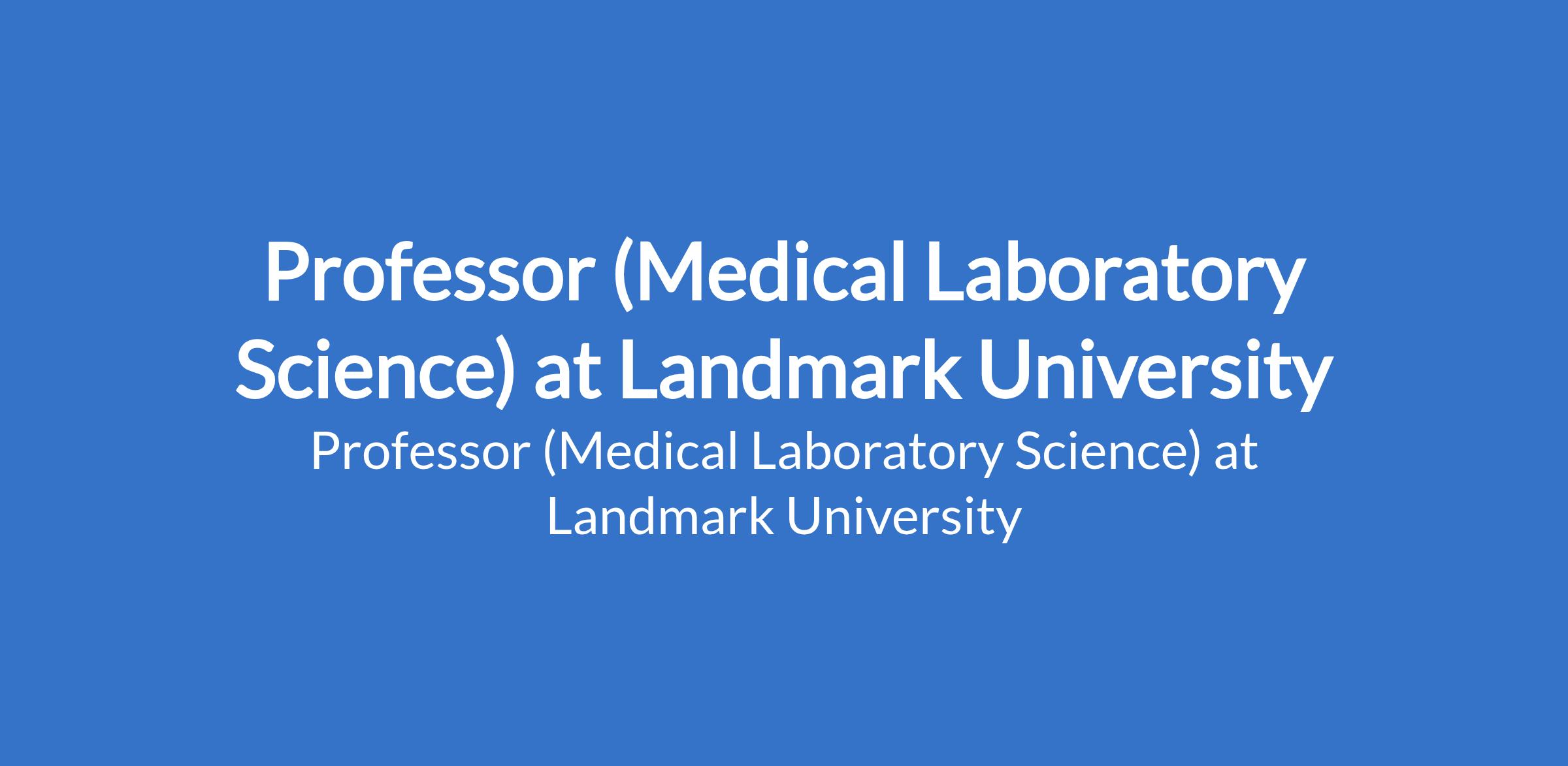 Landmark University invites applications from suitable candidates to fill the position of: Professor (Medical Laboratory Science). The position is located in Omu-Aran, Kwara State. Interested candidates should possess a Ph.D. Degree with specialization in the discipline applied for with evidence of academic leadership in terms of publications, project design execution and monitoring, administrative leadership, etc. and at least 12 years of post-qualification, full time relevant teaching and research experience.