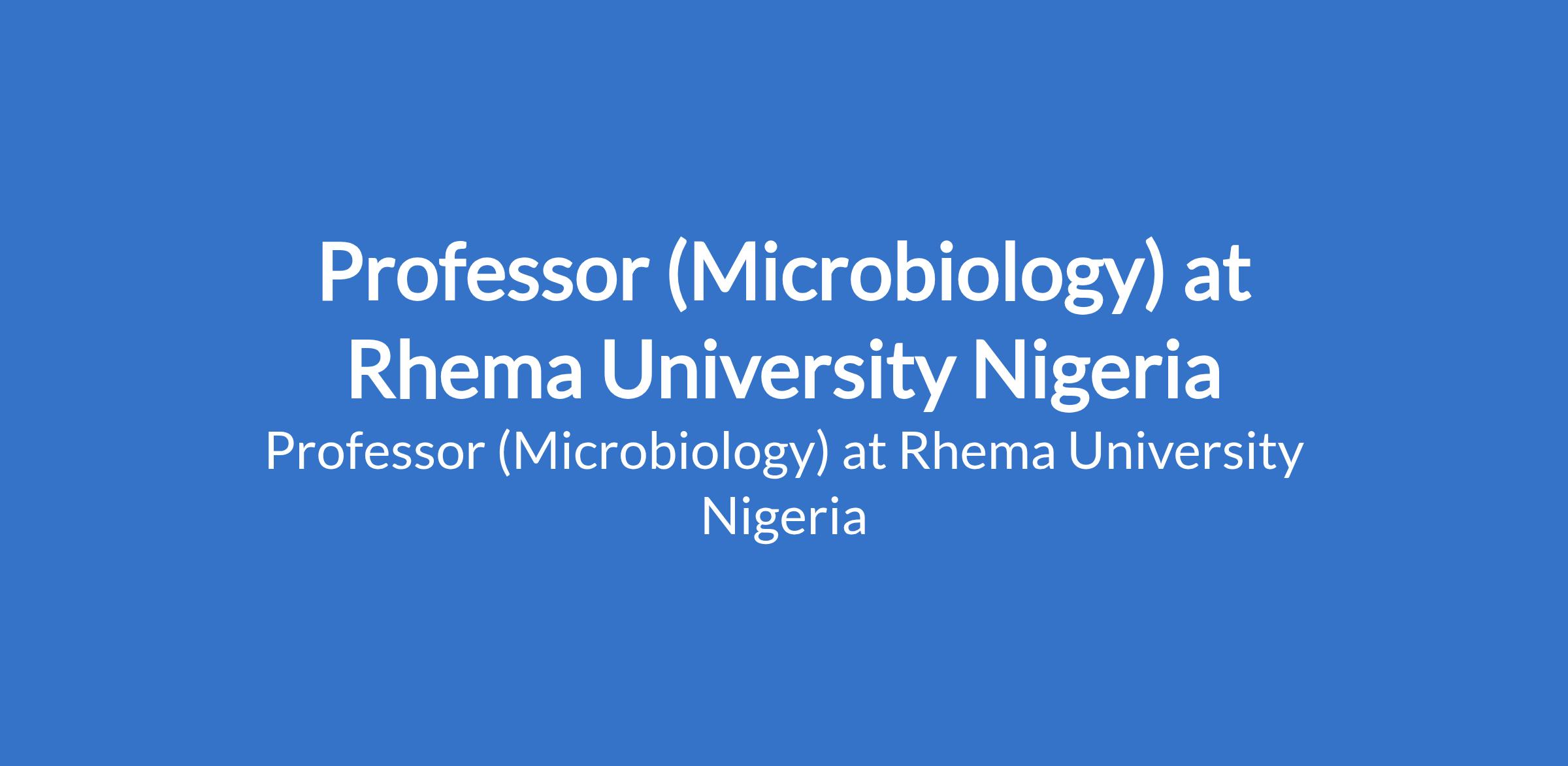 Rhema University Nigeria invites applications from suitably qualified candidates for the position of: Professor (Microbiology). The position is located in Aba, Abia State. Interested candidates should possess a Ph.D Degree with ten years post qualification experience in Microbiology, and acceptable number of publications.