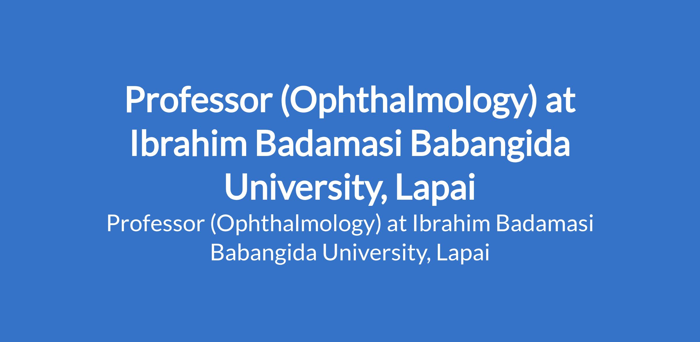 Ibrahim Badamasi Babangida University, Lapai invites applications from suitably qualified candidates to fill the position of: Professor (Ophthalmology). The position is located in Niger State. Interested candidates should be holders of MBBS Degree from recognized Universities with PhD, Fellowship of the National Postgraduate Medical College of Nigeria or its equivalent in the relevant specialty/sub specialty with at least twelve (12) years teaching, research and administrative experience in a tertiary institution. institution.