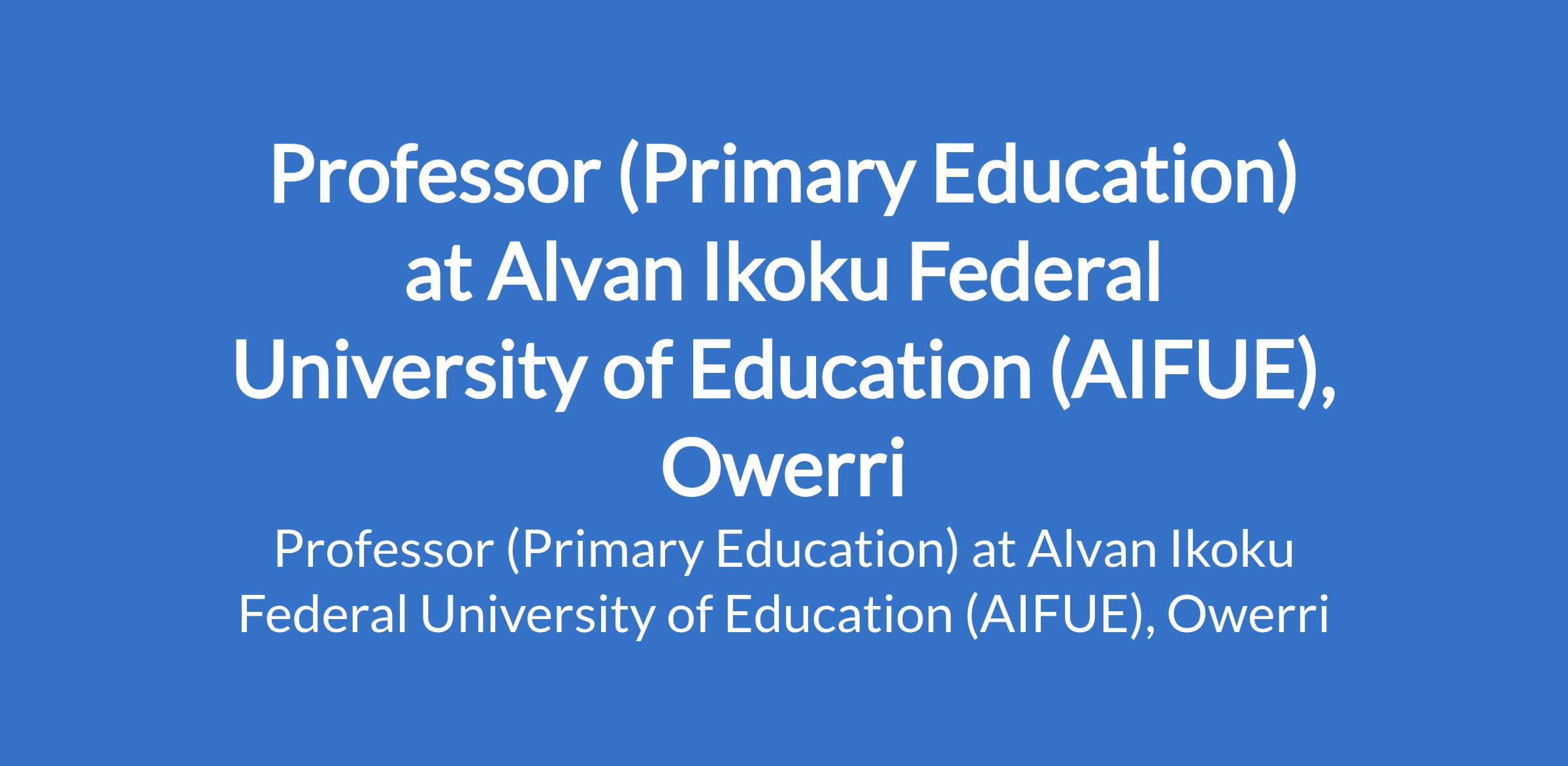 Alvan Ikoku Federal University of Education (AIFUE), Owerri invites applications from suitably qualified candidates for the position of: Professor (Primary Education). The position is located in Imo State. Interested candidates should possess a PhD Degree in the relevant discipline with a minimum of three (3) years as Reader (Associate Professor) and fifteen (15) years of university teaching and research experience.