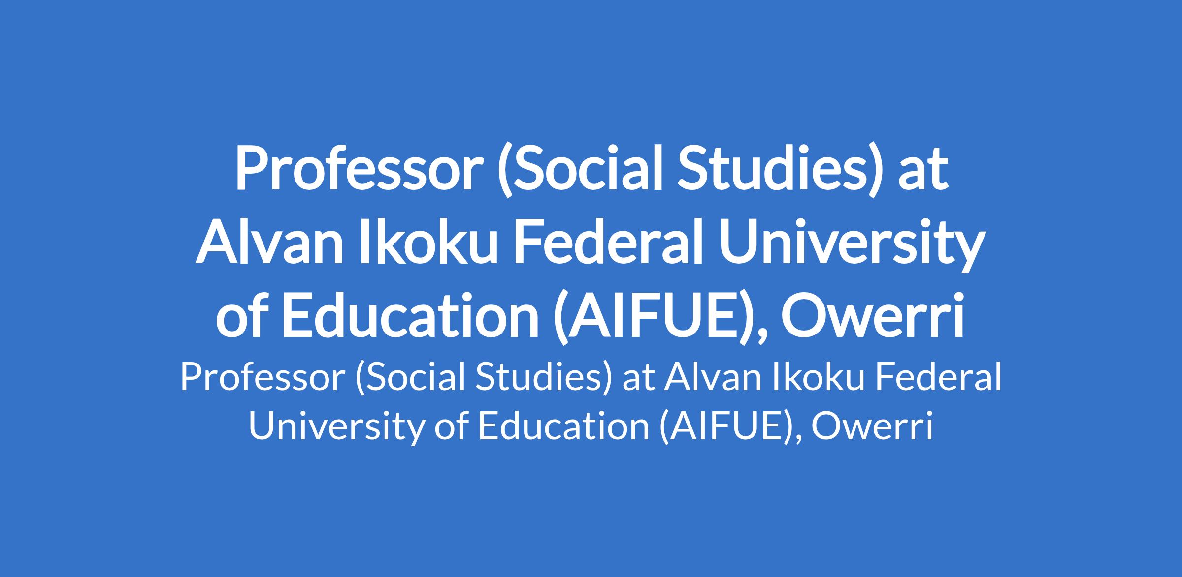 Alvan Ikoku Federal University of Education (AIFUE), Owerri invites applications from suitably qualified candidates for the position of: Professor (Social Studies). The position is located in Imo State. Interested candidates should possess a PhD Degree in the relevant discipline with a minimum of three (3) years as Reader (Associate Professor) and fifteen (15) years of university teaching and research experience.