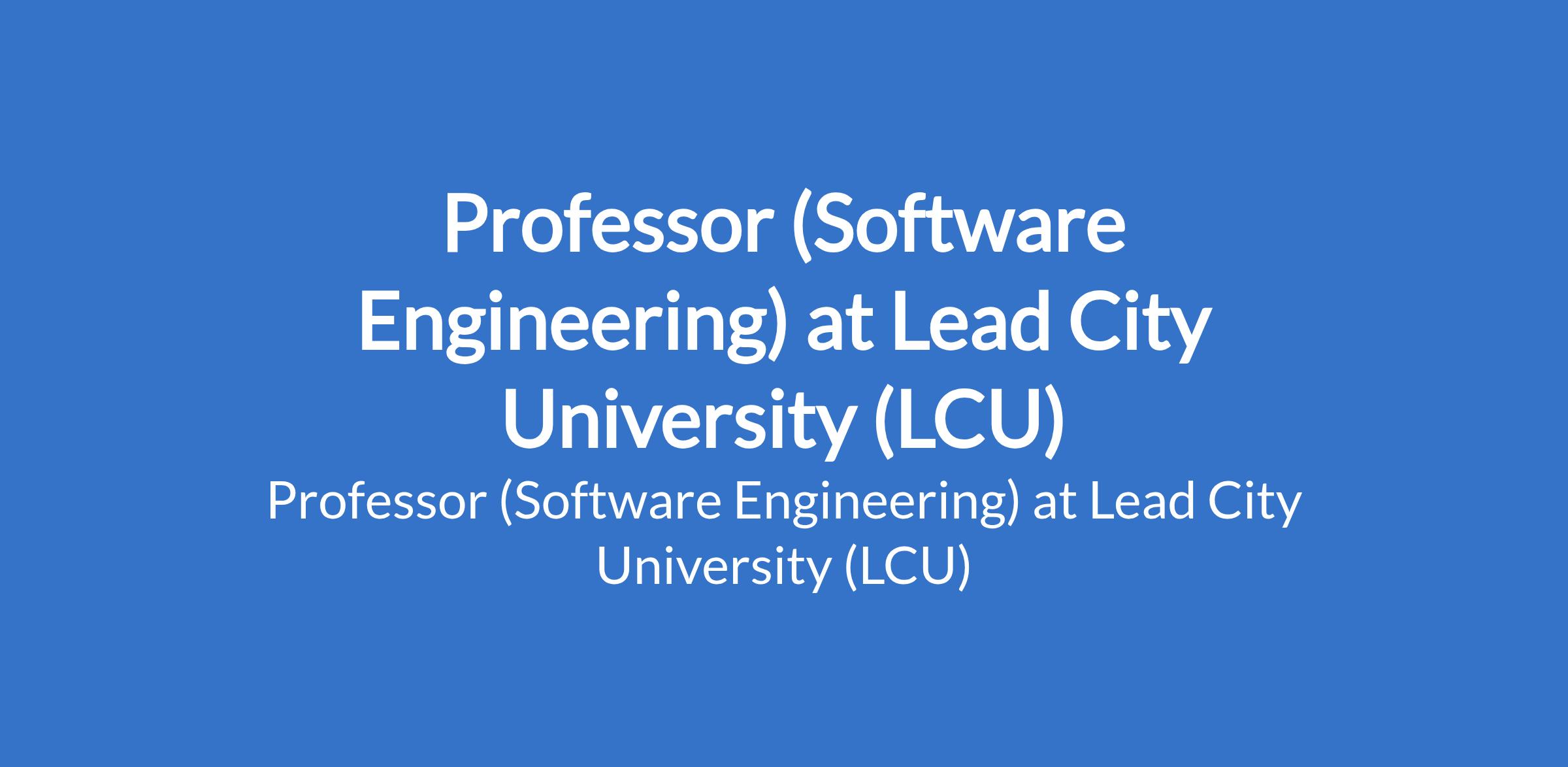 Lead City University (LCU) invites applications from suitable candidates to fill the position of: Professor (Software Engineering). The position is located in Ibadan, Oyo State. Interested candidates should possess a good First Degree, not below second- class lower division, from a reputable University, a Master's and PhD Degree (or MBBS plus PhD/Fellowship) in the appropriate discipline with at least 12 years of cognate experience teaching and conducting research in a recognised and reputable University.