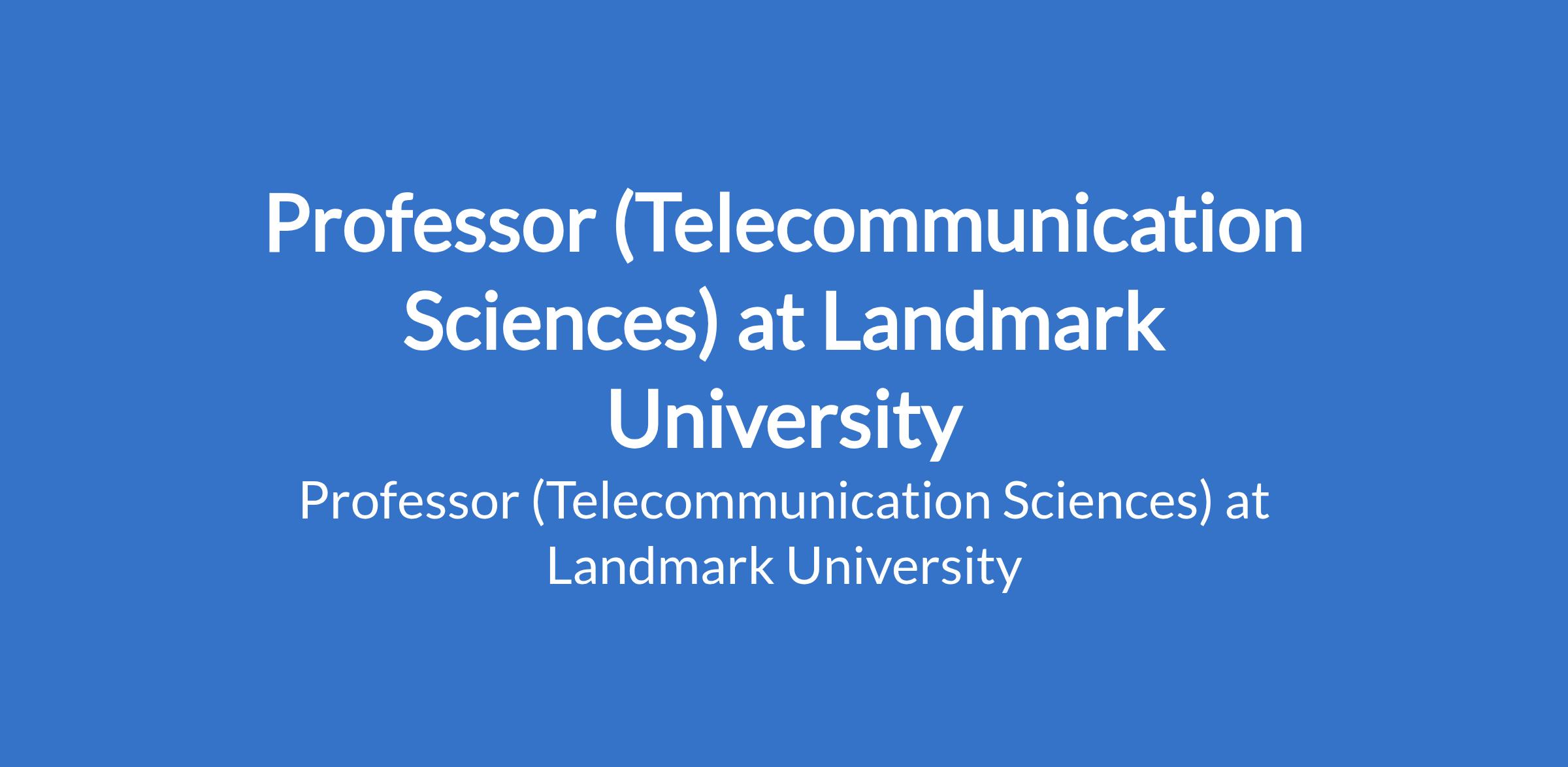 Landmark University invites applications from suitable candidates to fill the position of: Professor (Telecommunication Sciences). The position is located in Omu-Aran, Kwara State. Interested candidates should possess a Ph.D. Degree with specialization in the discipline applied for with evidence of academic leadership in terms of publications, project design execution and monitoring, administrative leadership, etc. and at least 12 years of post-qualification, full time relevant teaching and research experience.