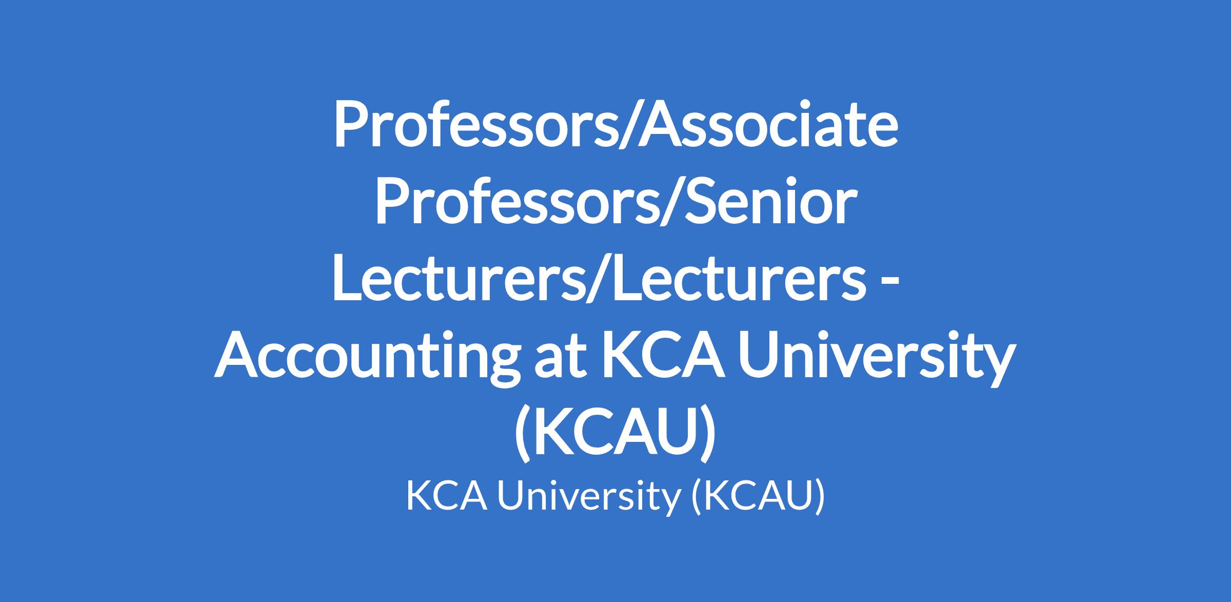 Professors/Associate Professors/Senior Lecturers/Lecturers - Accounting at KCA University (KCAU)