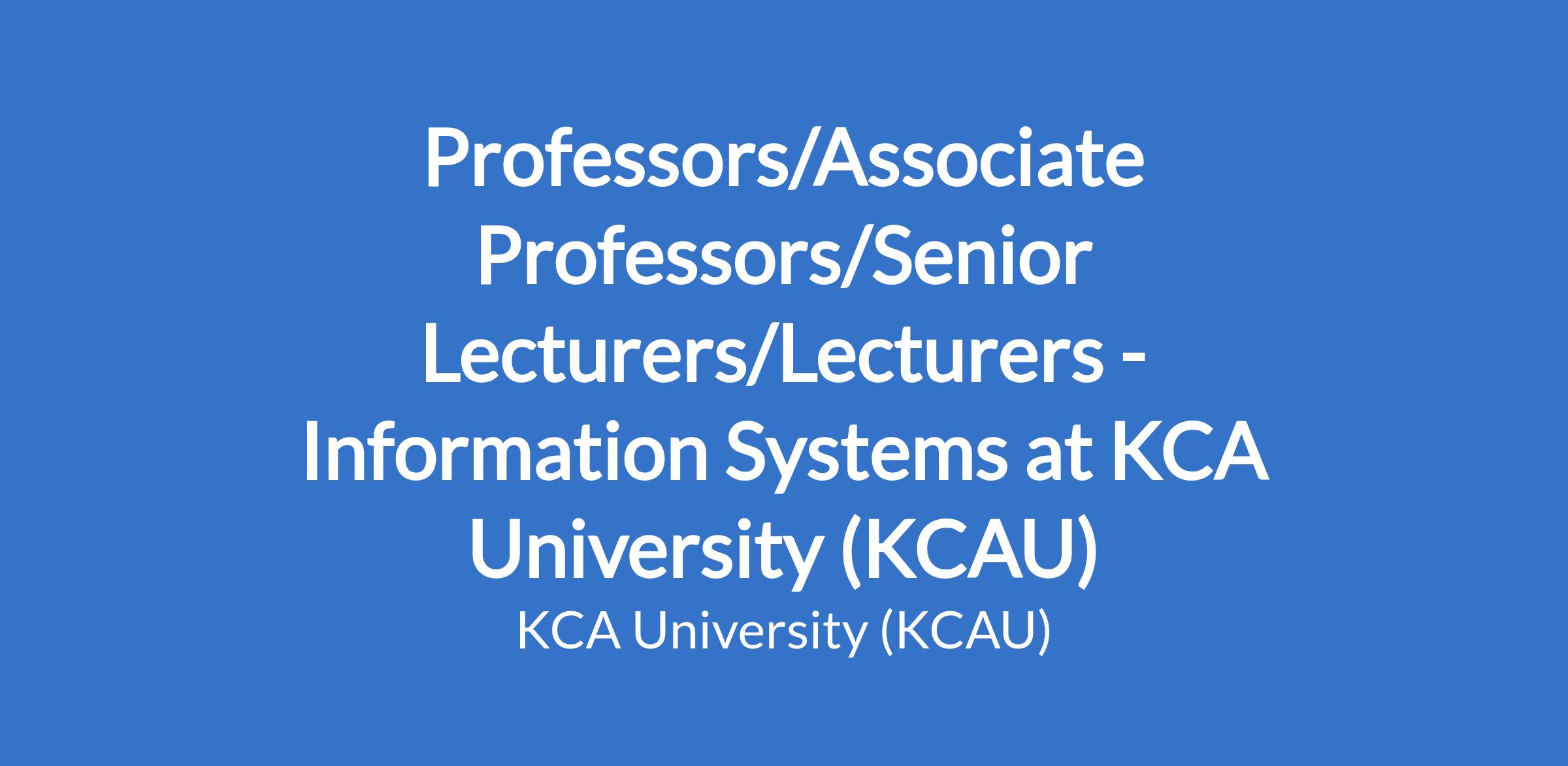 Professors/Associate Professors/Senior Lecturers/Lecturers - Information Systems at KCA University (KCAU)