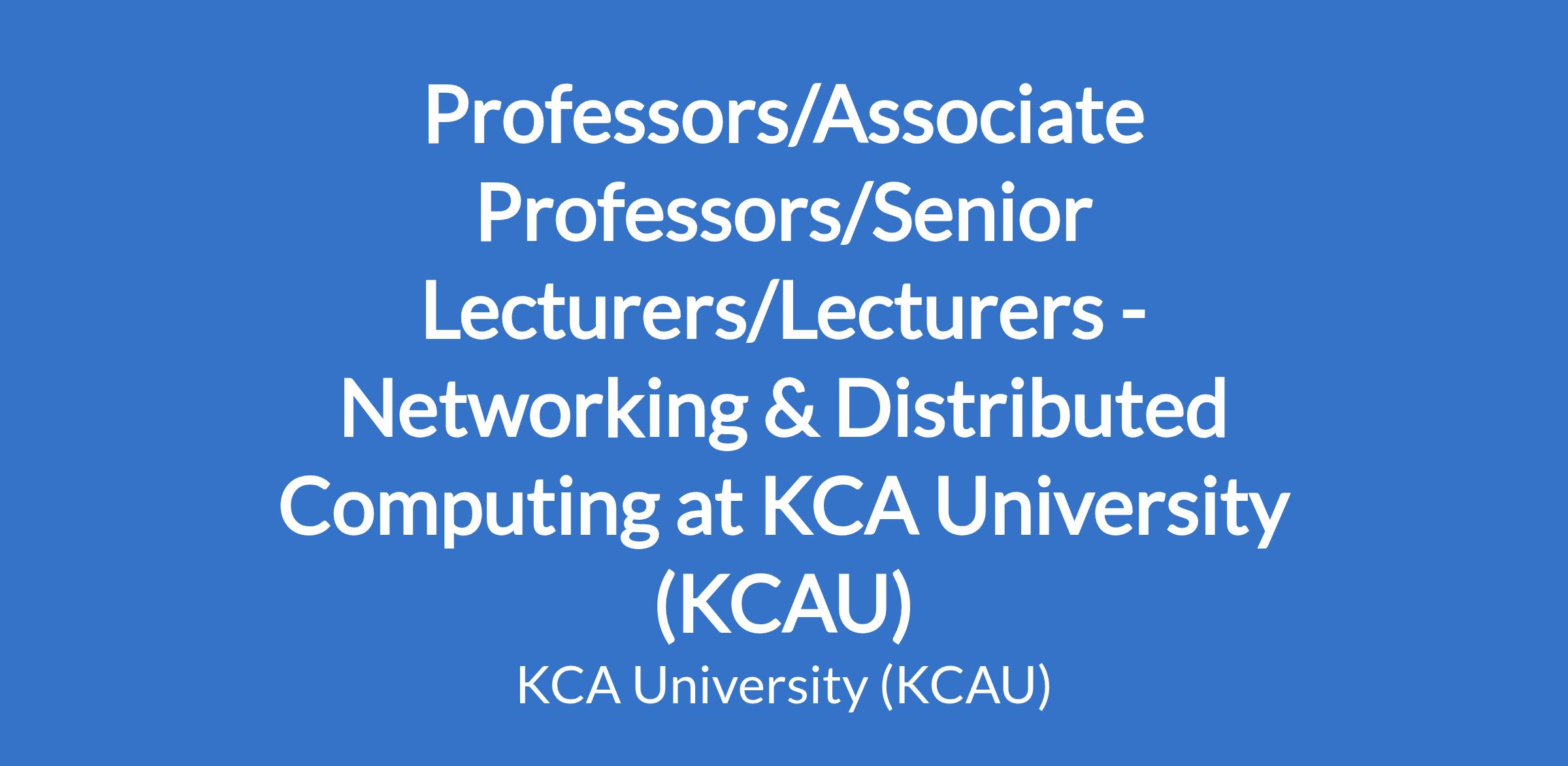 Professors/Associate Professors/Senior Lecturers/Lecturers - Networking & Distributed Computing at KCA University (KCAU)
