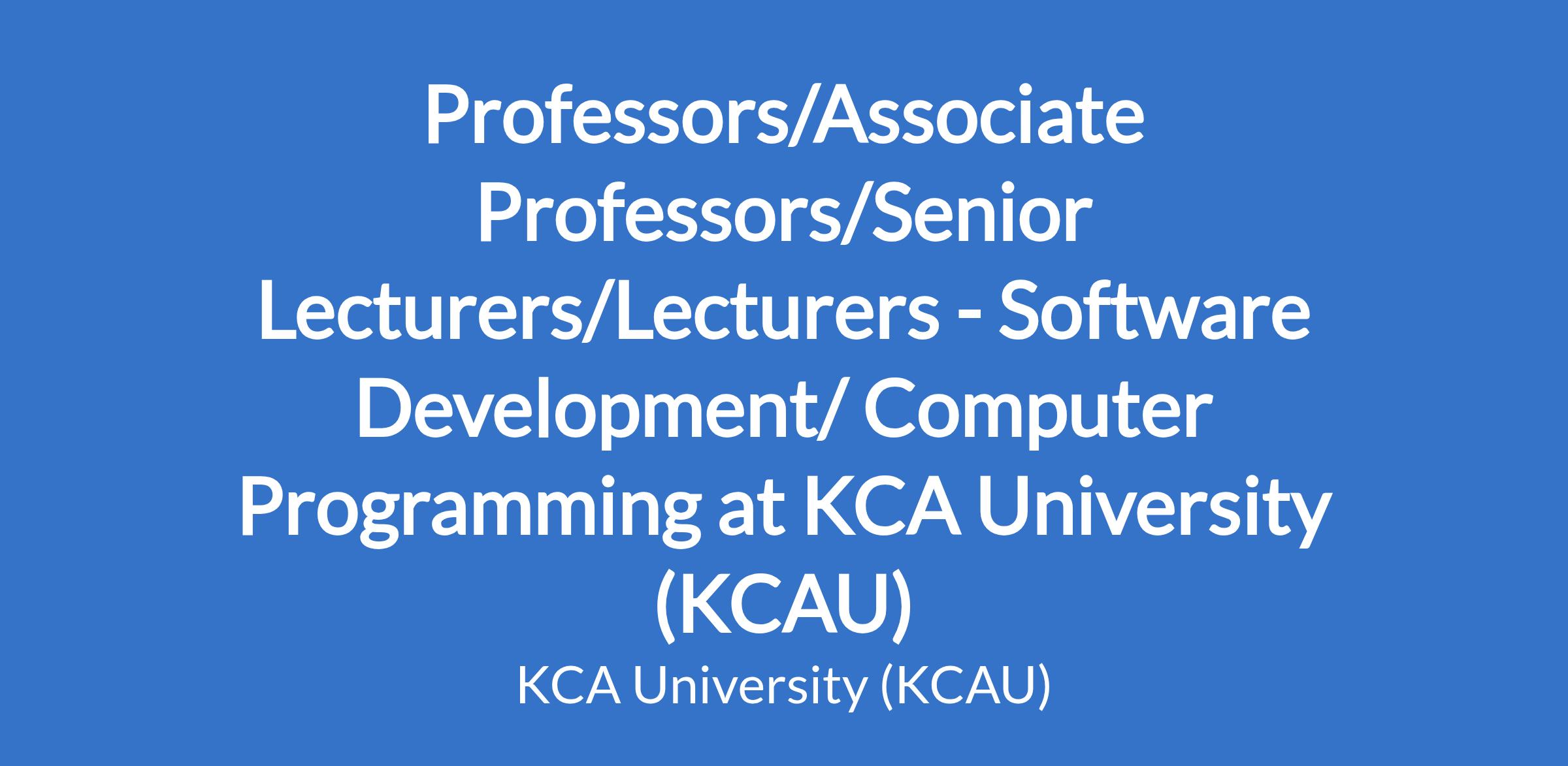 Professors/Associate Professors/Senior Lecturers/Lecturers - Software Development/ Computer Programming at KCA University (KCAU)