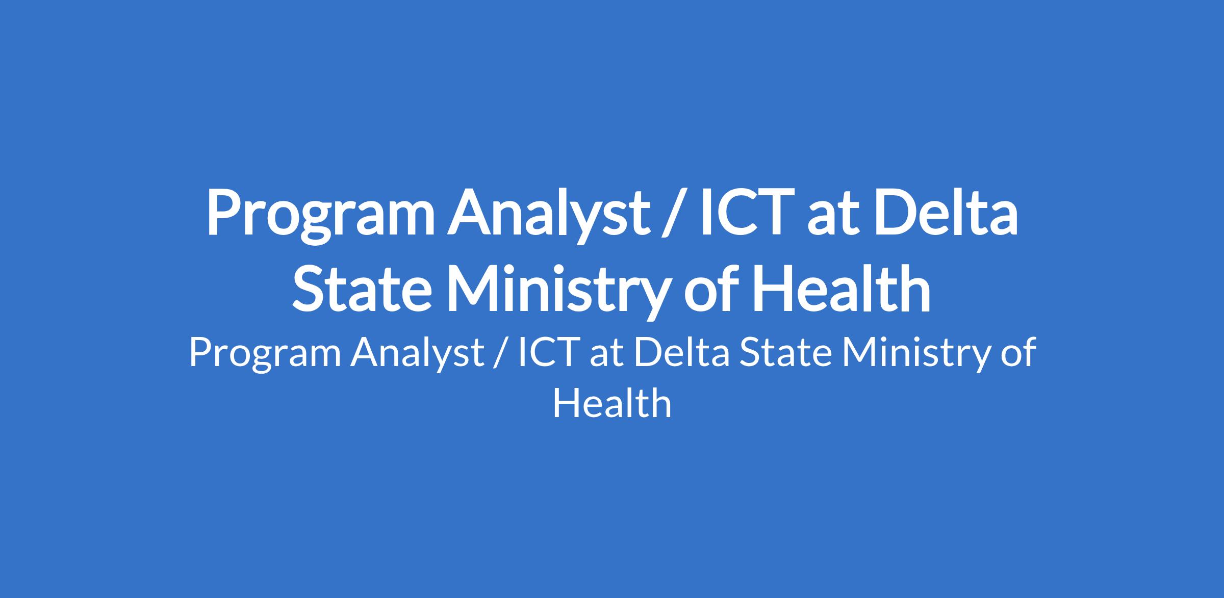 Program Analyst / ICT at Delta State Ministry of Health