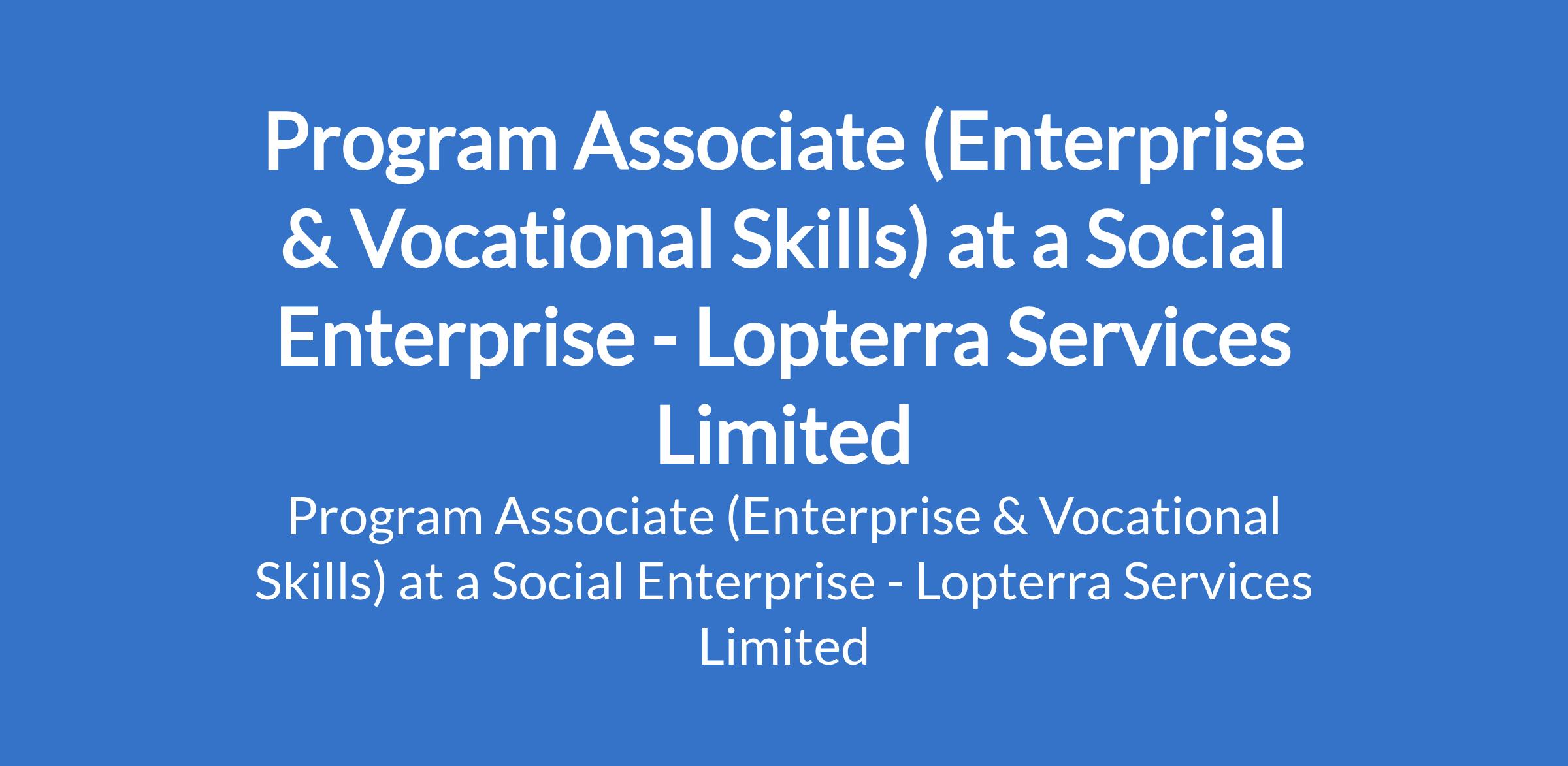Lopterra Services Limited - Our client, a Social Enterprise is recruiting to fill the position of: Program Associate (Enterprise & Vocational Skills). The position is located in Ekiti State. Salary: N150,000 / month. Interested candidates should possess a Gender Studies, Public Policy / Public Administration, Governance or Development Studies degree or equivalent qualification (including HND) in Business Administration, Economics, Development Studies, Entrepreneurship, Marketing, or a related field with a minimum of 1 3 years experience in enterprise development, social enterprise, livelihoods programming, SME support, or market systems development.