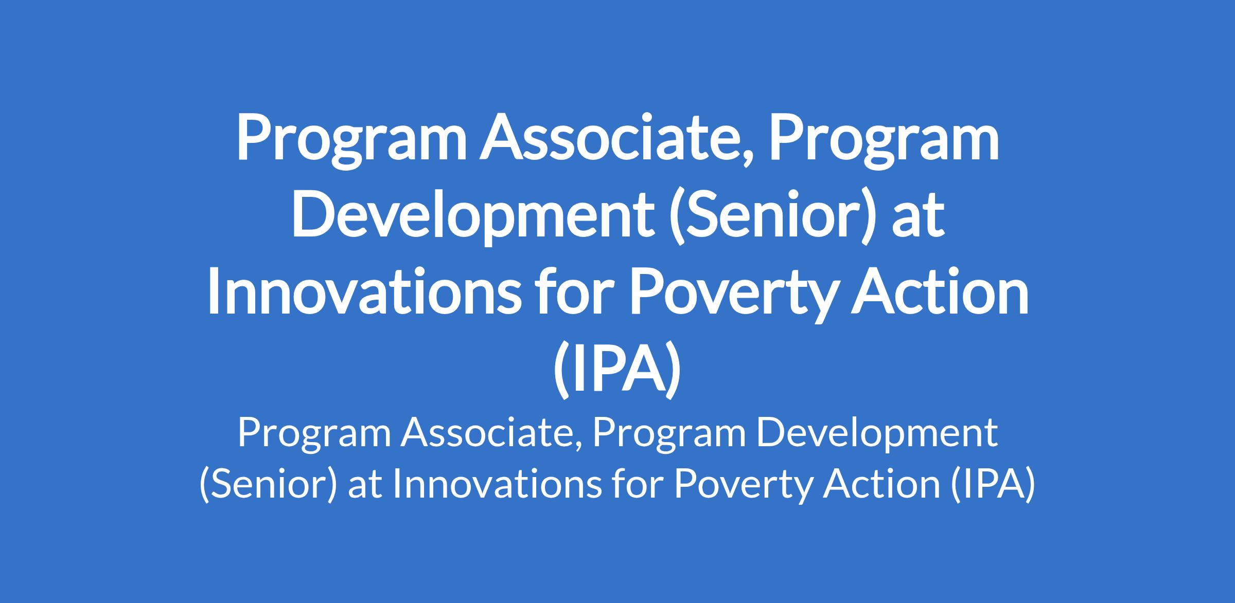 Innovations for Poverty Action (IPA) is recruiting to fill the position of: Program Associate, Program Development (Senior). Interested candidates should possess a Master's or Bachelor's Degree with 1-3 years of experience; Senior Associate: 4+ years of related experience.