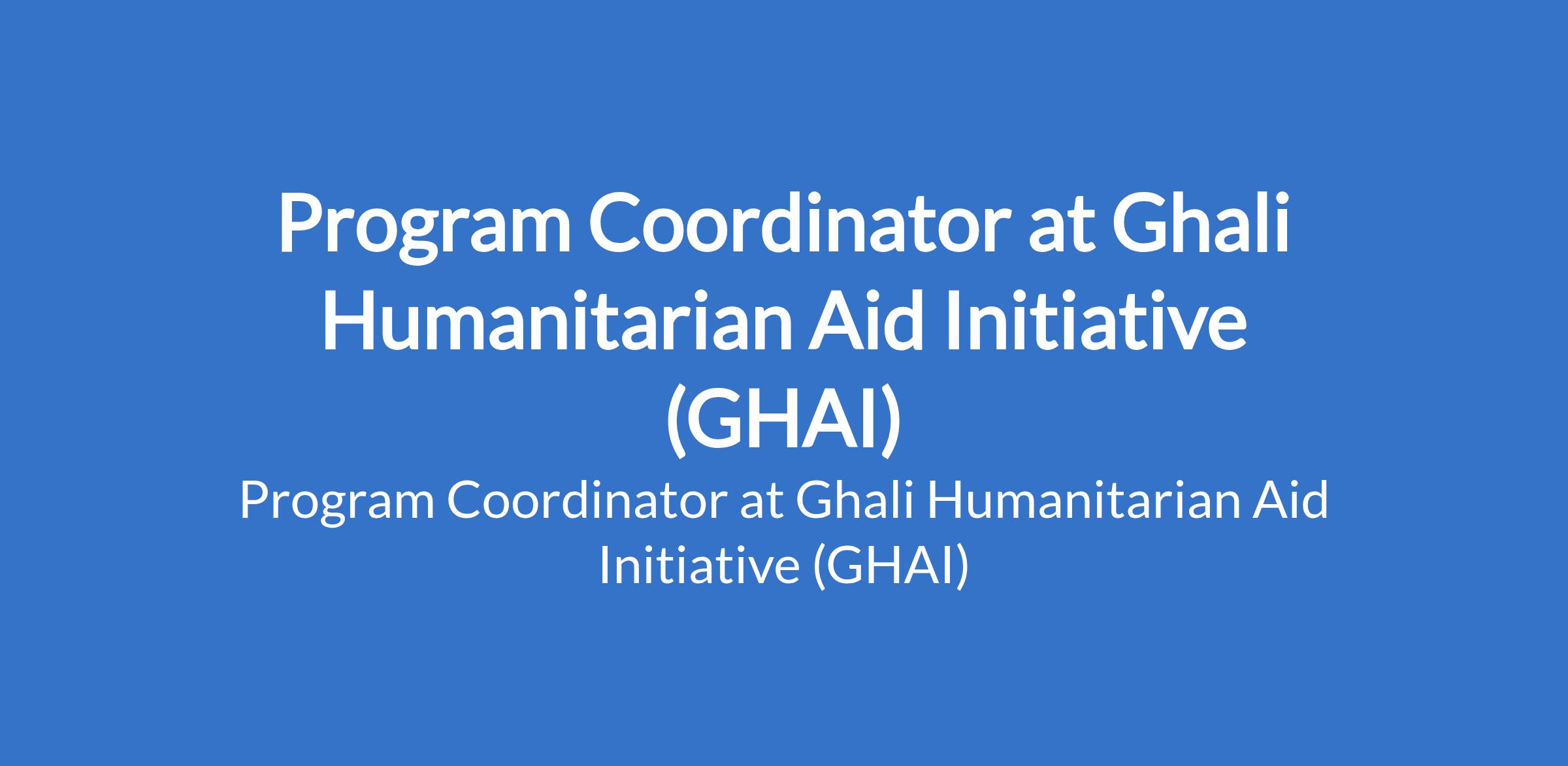 Program Coordinator at Ghali Humanitarian Aid Initiative (GHAI)