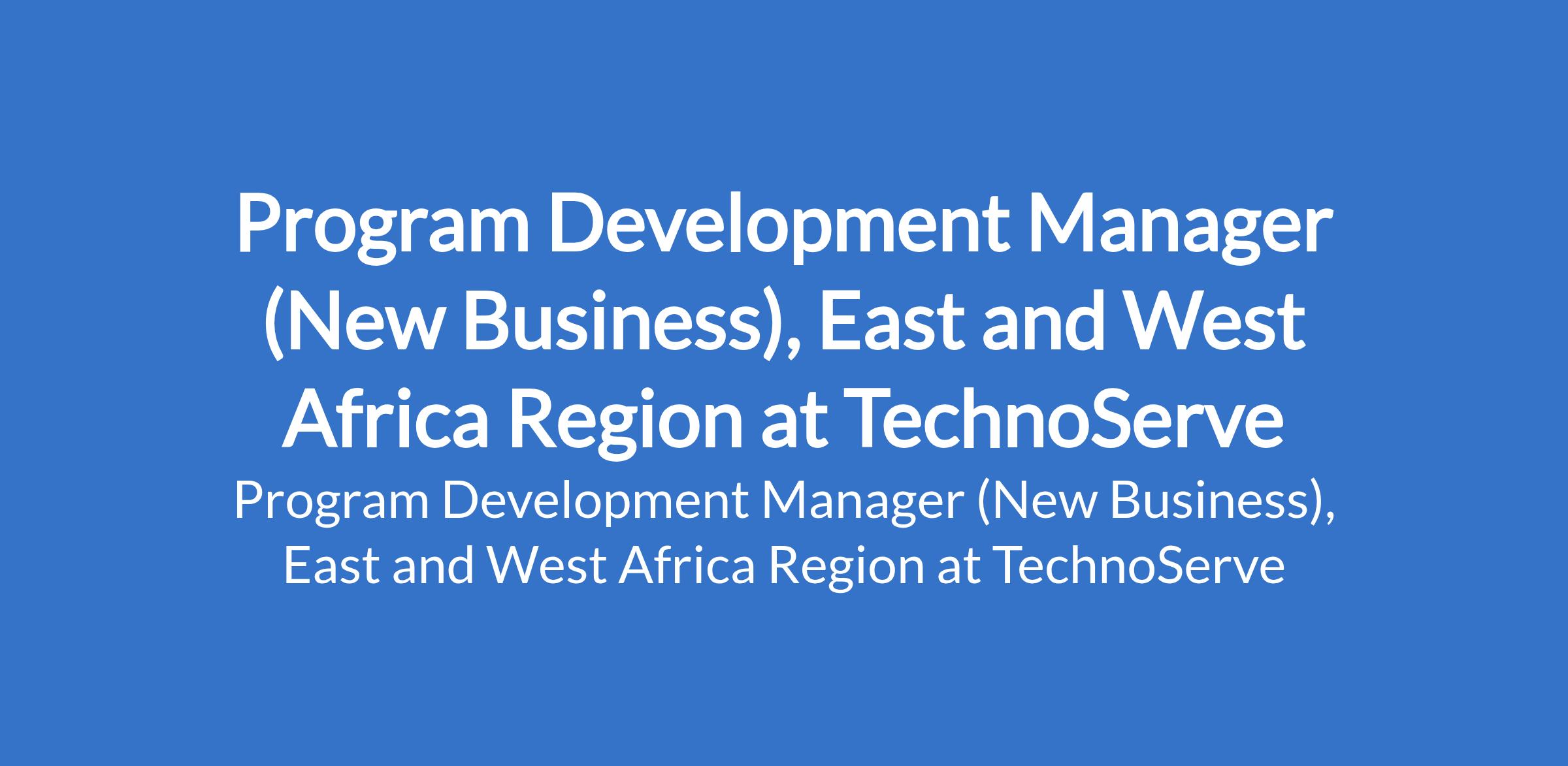 TechnoServe is recruiting to fill the position of: Program Development Manager (New Business), East and West Africa Region. Interested candidates should possess a Bachelor's Degree with 7 years of experience in International Developmentor 5 years of experience in International Development with a Master's Degree.