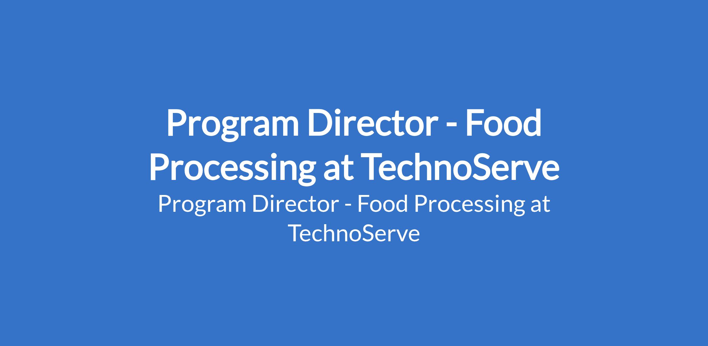 TechnoServe is recruiting to fill the position of: Program Director - Food Processing. The position is located in Abuja. Interested candidates should possess a Masters Degree or equivalent in Agribusiness, Agricultural Economics, Business Administration, International Development, Economics, or other relevant field with at least 7 years of experience or a Bachelors Degree with 10 years of experience.