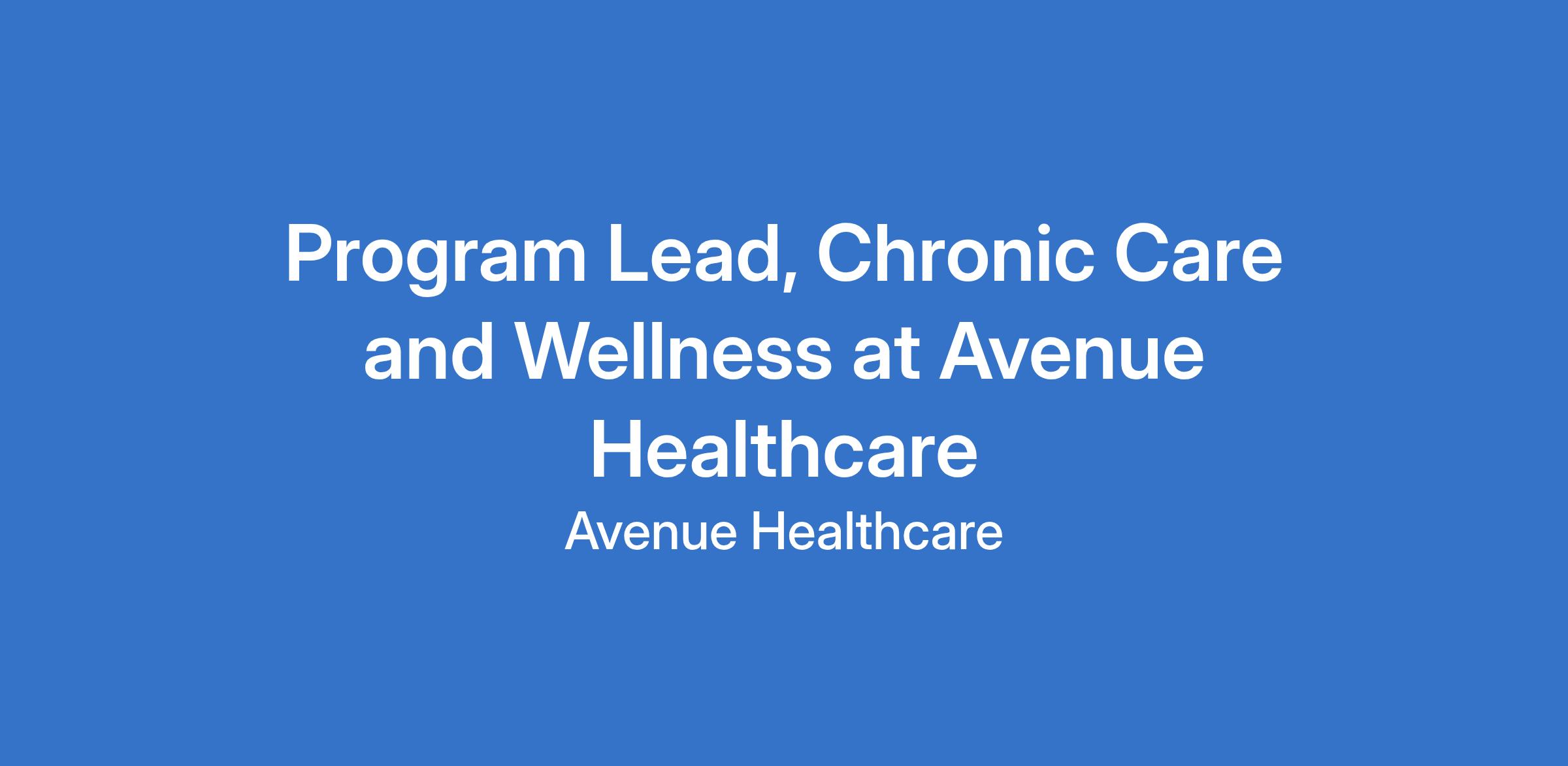 The Program Lead for Chronic Care and Wellness is responsible for overseeing, designing, and managing programs that address chronic health conditions and promote wellness initiatives.