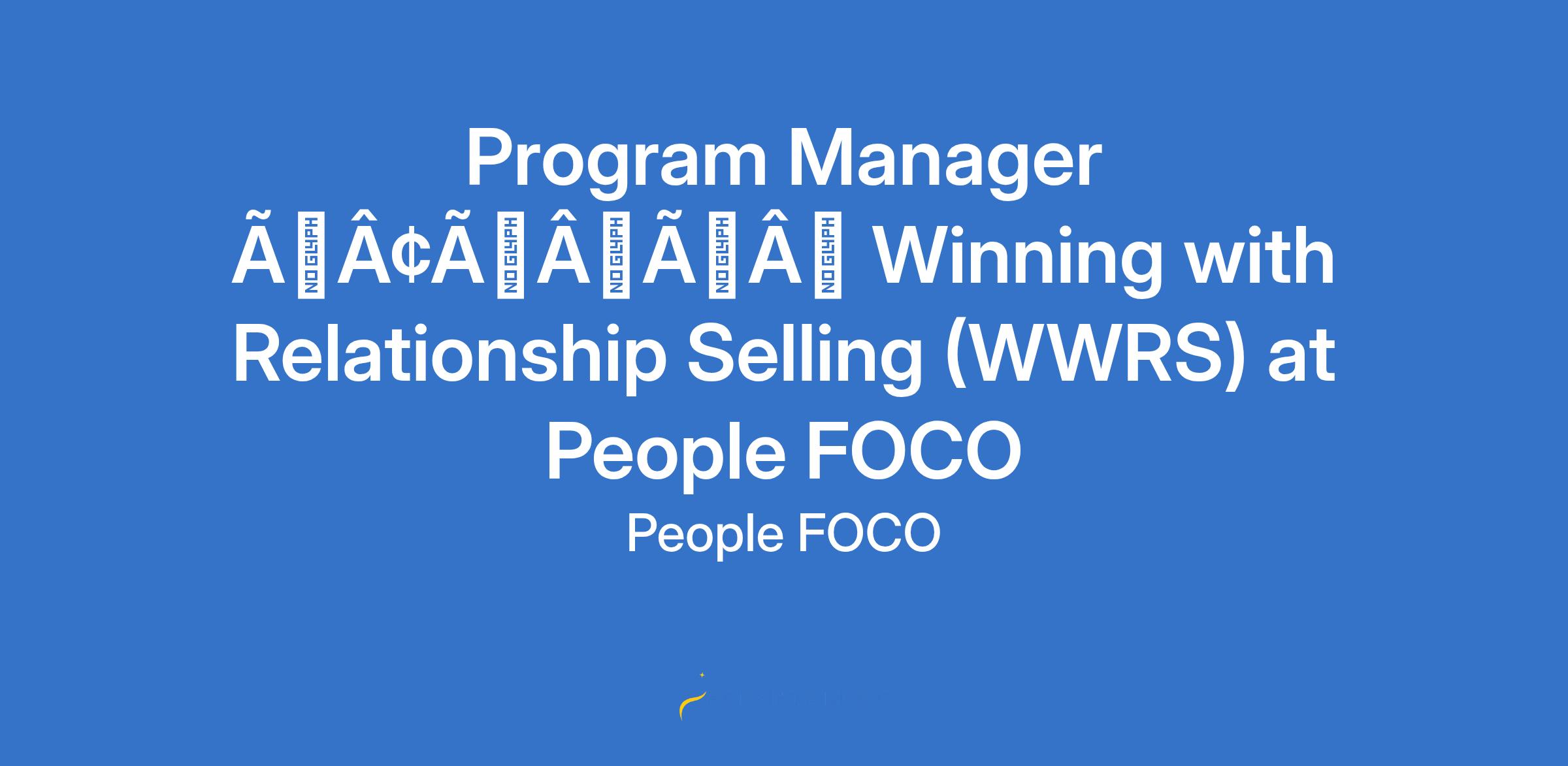 Program Manager âÃÂàWinning with Relationship Selling (WWRS) at People FOCO