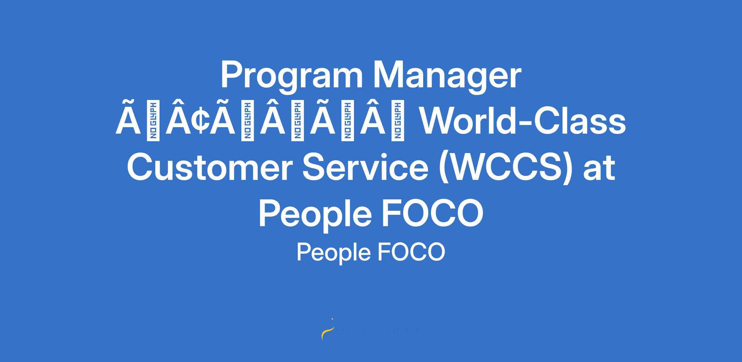 Program Manager âÃÂàWorld-Class Customer Service (WCCS) at People FOCO