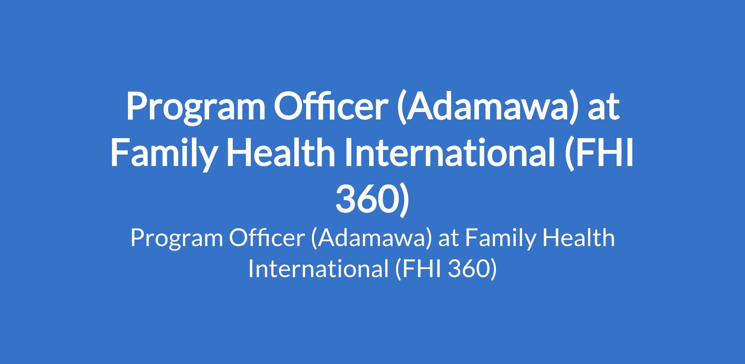 Family Health International (FHI 360) is recruiting to fill the position of: Program Officer. The position is located in Adamawa State. Interested candidates should possess a Bachelors Degree in Public Health, Business Administration, Health Sciences, Behavioral Sciences with basic knowledge of concepts, practices, and procedures with project design with 4+ years of relevant experience with projects management principles and practices.