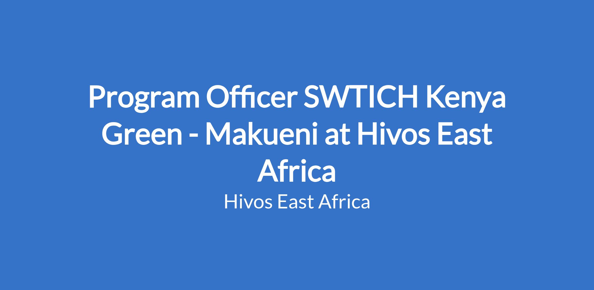 Program Officer SWTICH Kenya Green - Makueni at Hivos East Africa