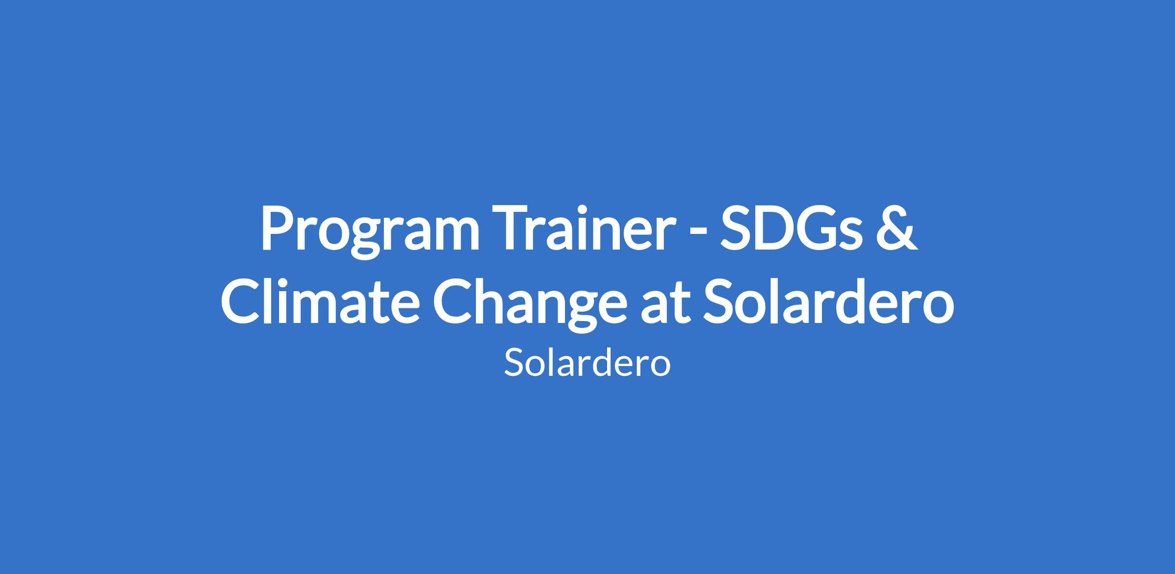 Program Trainer - SDGs & Climate Change at Solardero
