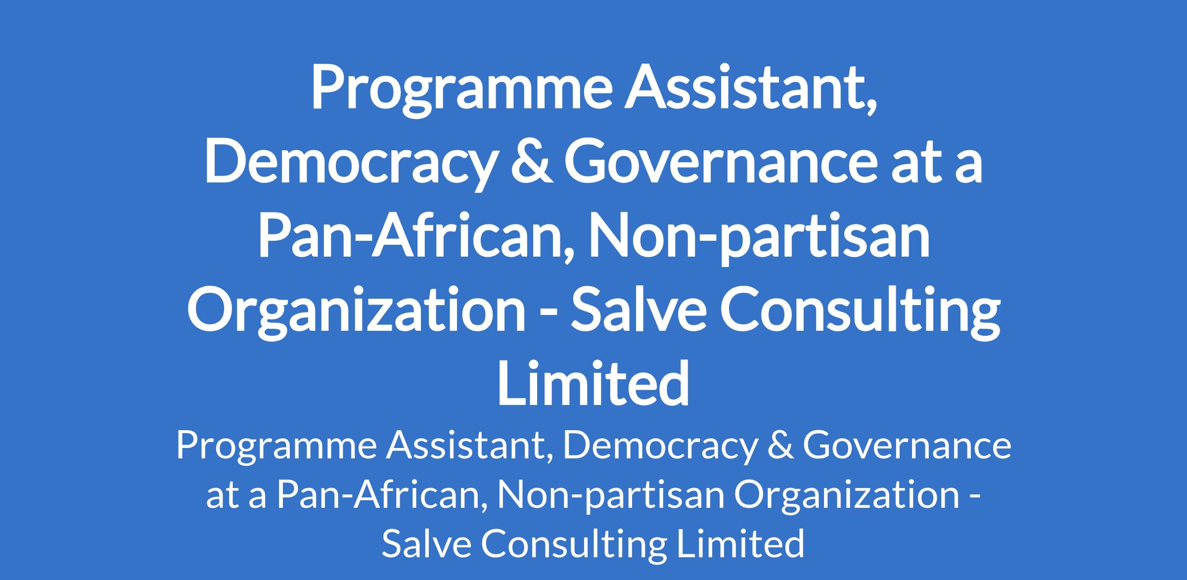 Salve Consulting Limited - Our client, a Pan-African, Non-partisan organization is recruiting to fill the position of: Programme Assistant, Democracy & Governance. The position is located in Abuja (FCT). Salary: N250,000 - N300,000 / month. Interested candidates should possess Bachelors Degree in Political Science, Public Administration, International Relations, Gender Studies, Development Studies, Law, or a related field with a minimum of 3 years relevant professional experience in programme support, advocacy, research, public policy, or nonprofit/development environments.