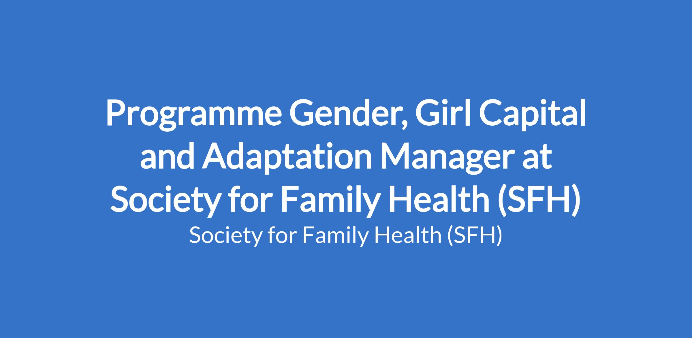 The Lead - Gender, Girl Capital and Adaptation provides strategic leadership and technical expertise to mainstream gender equity across SFH's programming, advances girl capital development initiatives, and drives adaptive management processes that strengthen programme quality and impact.