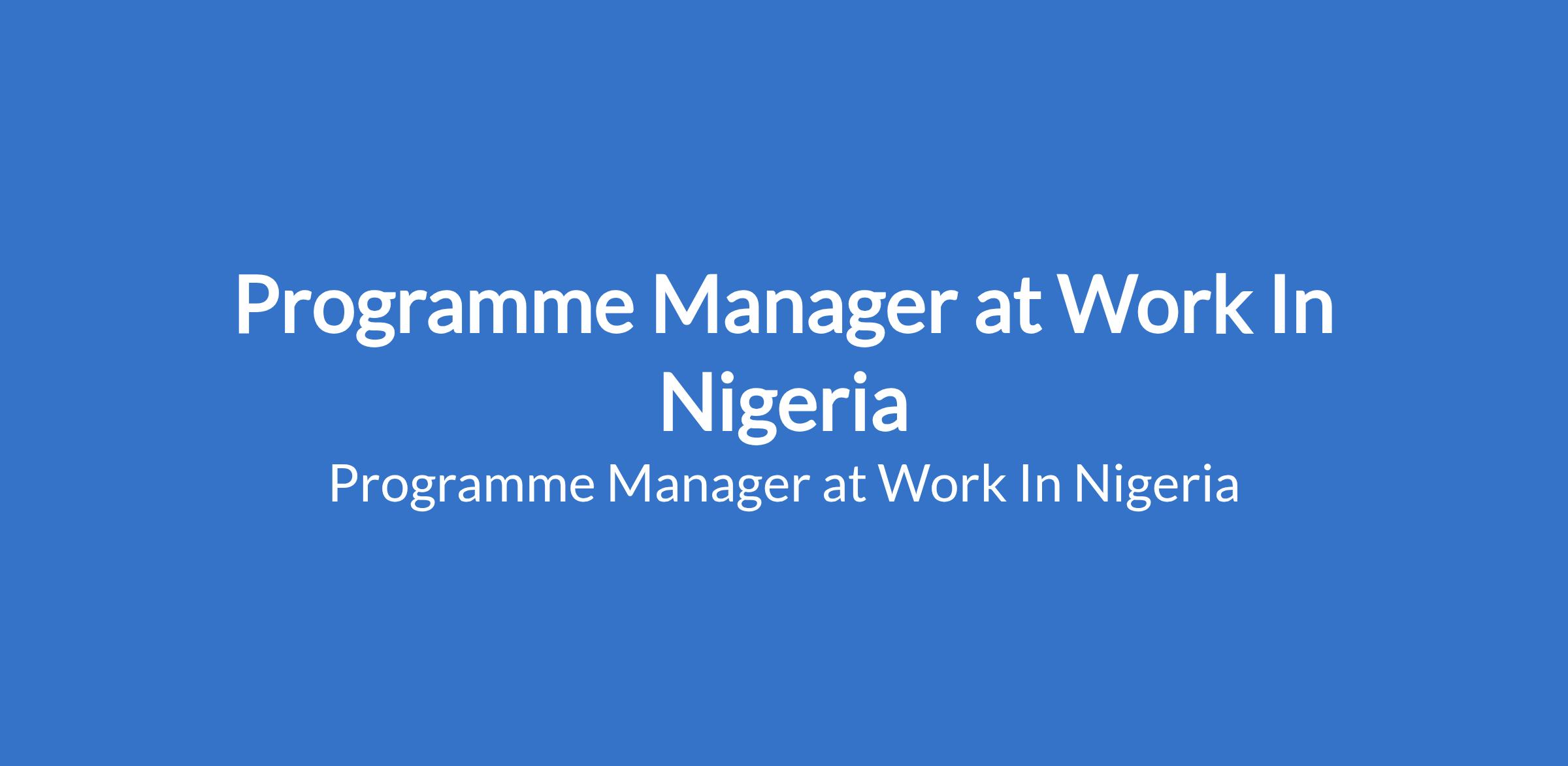 Work In Nigeria is recruiting to fill the position of: Programme Manager. The position is located in Warri, Delta State. Salary: N300,000 - N500,000 per month. a Degree in Development Studies, Public Health, Social Sciences, Education, Public Administration, law or any related field with at least 58 years of progressive experience in programme management, preferably within non-profit, development, or donor-funded organisations..