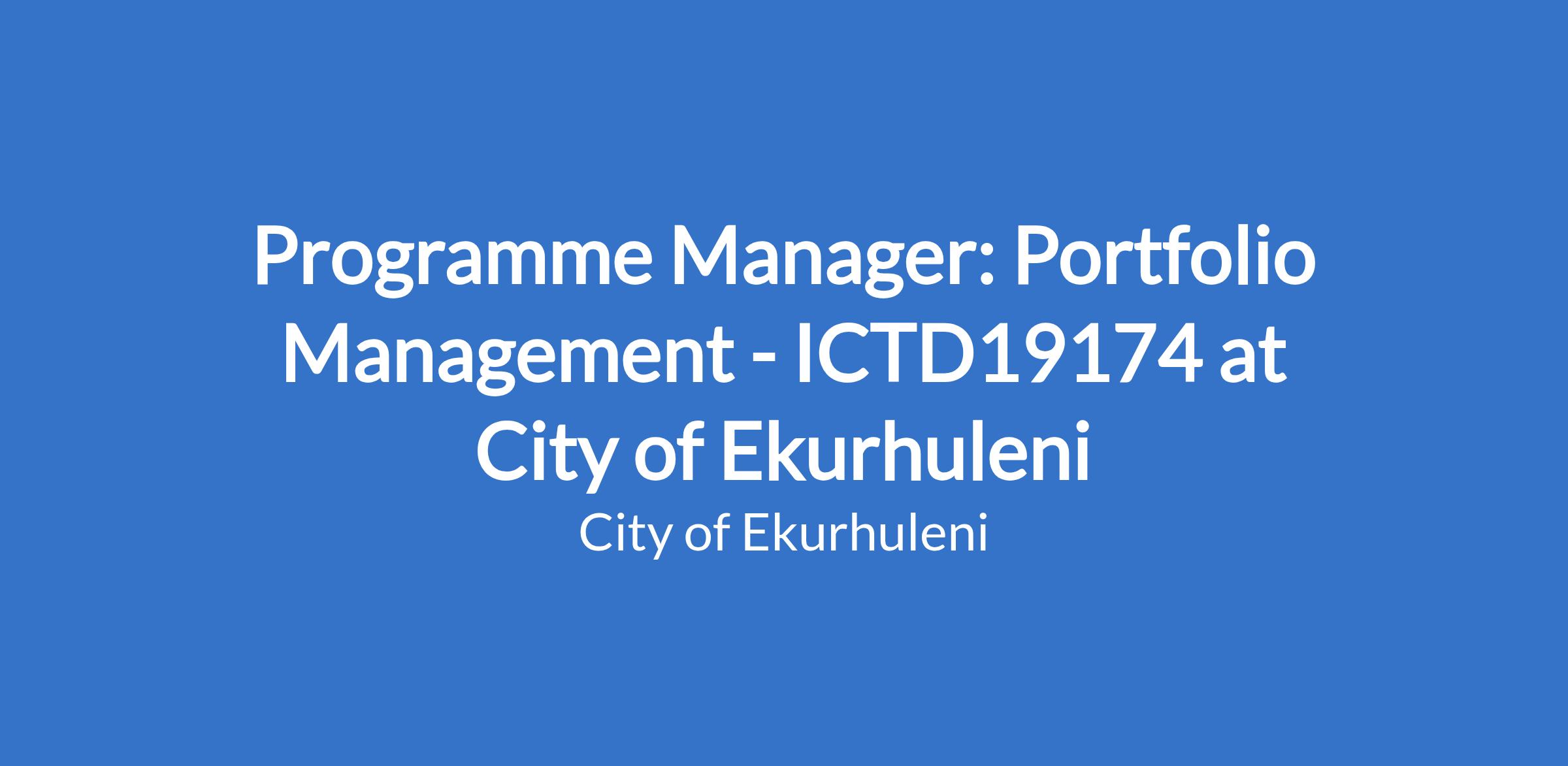 Programme Manager: Portfolio Management - ICTD19174 at City of Ekurhuleni