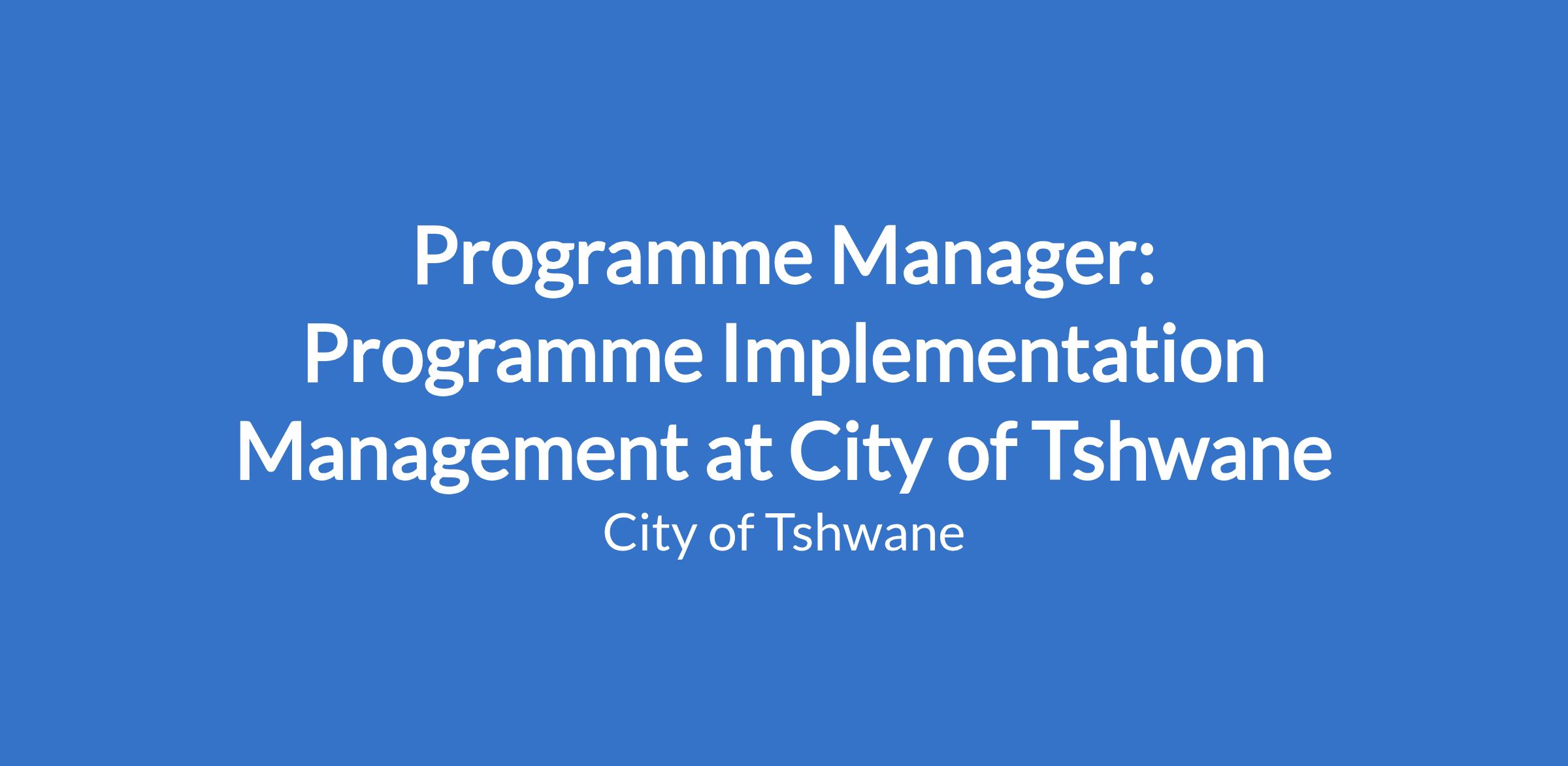 Programme Manager: Programme Implementation Management at City of Tshwane