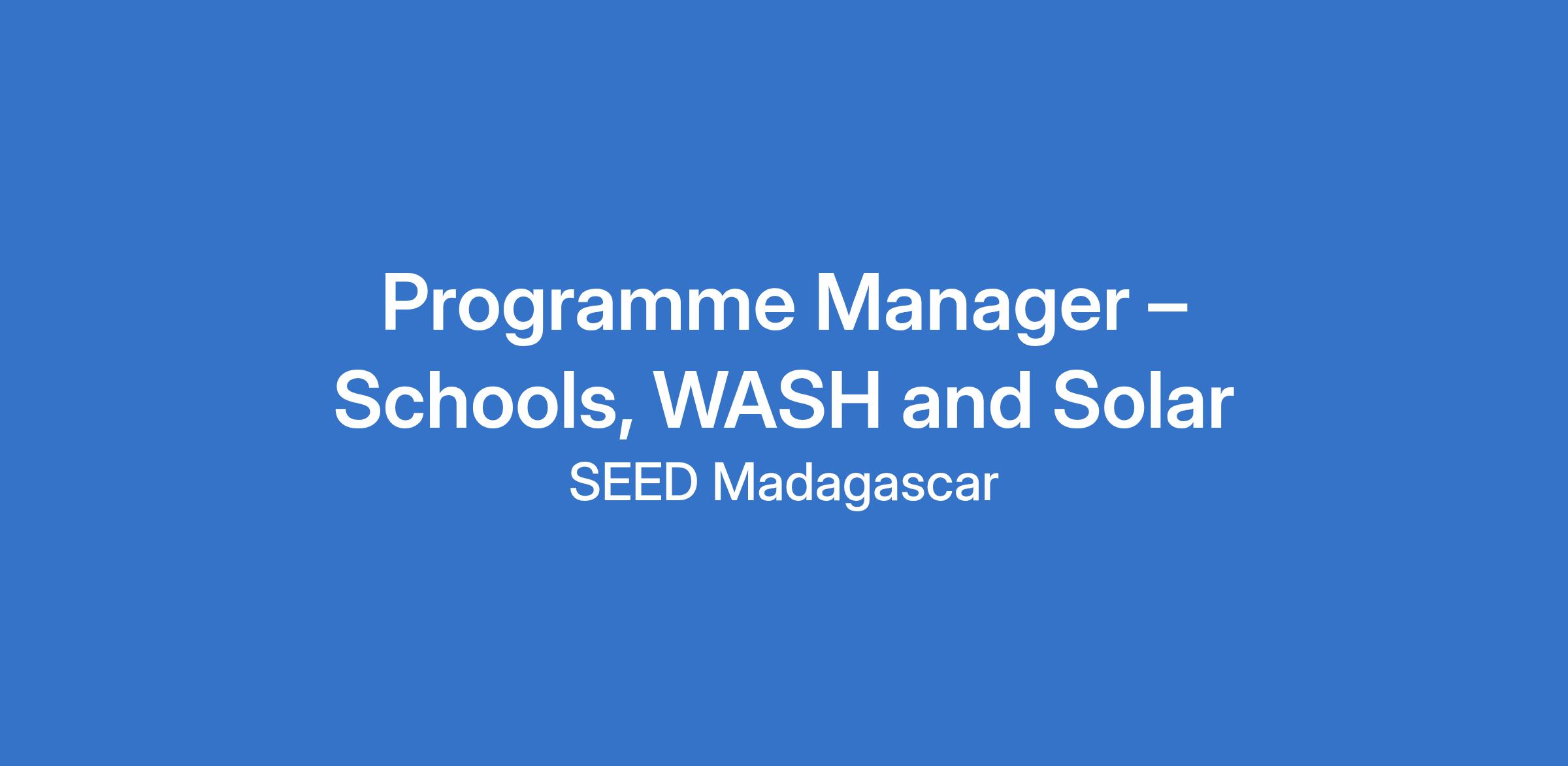 We are excited to offer an excellent opportunity for a development professional with 2-5 years of experience in programme and team management, grant writing, reporting and evaluation to join SEED Madagascar as our Programme Manager.