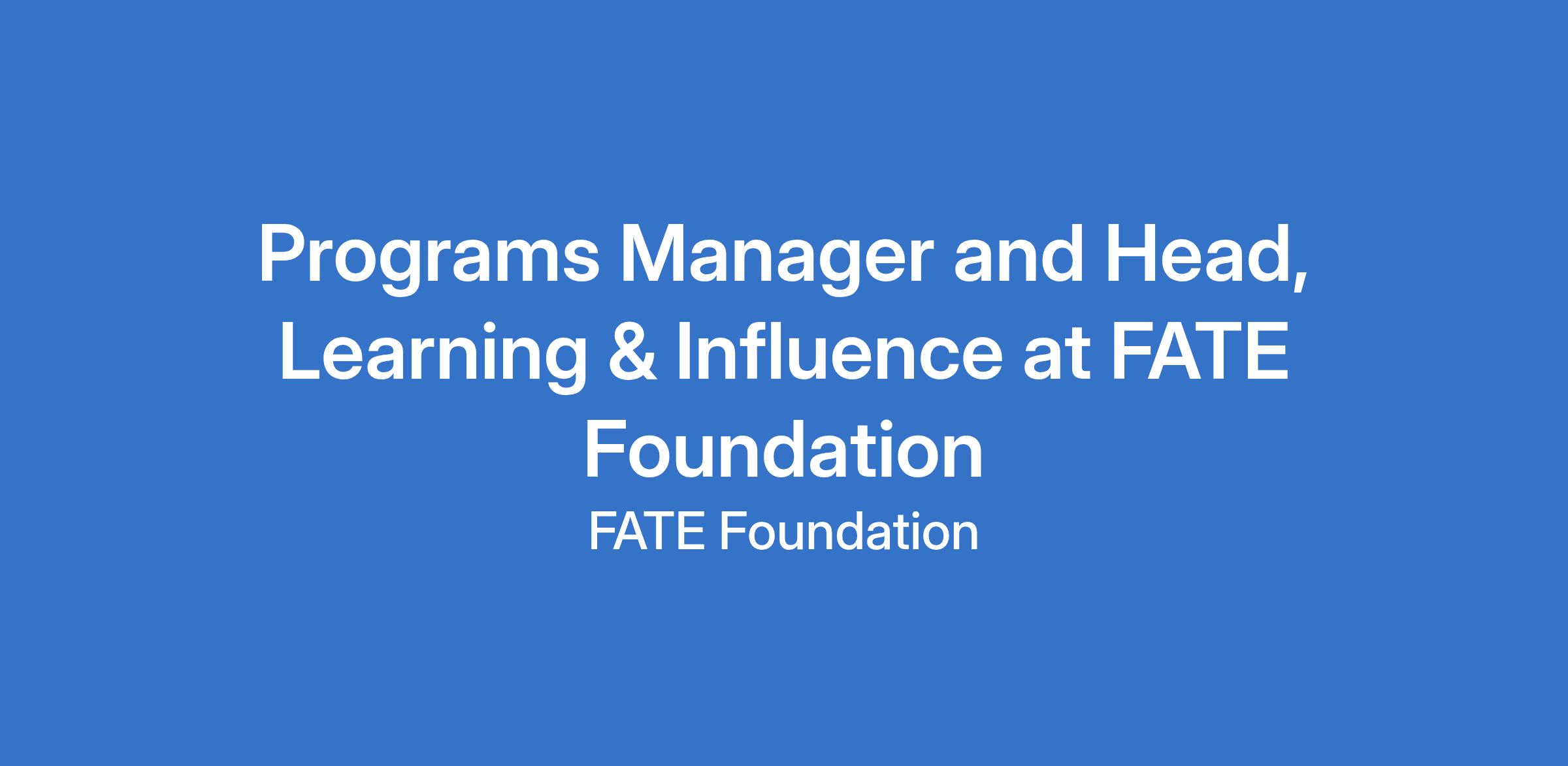 Programs Manager and Head, Learning & Influence at FATE Foundation