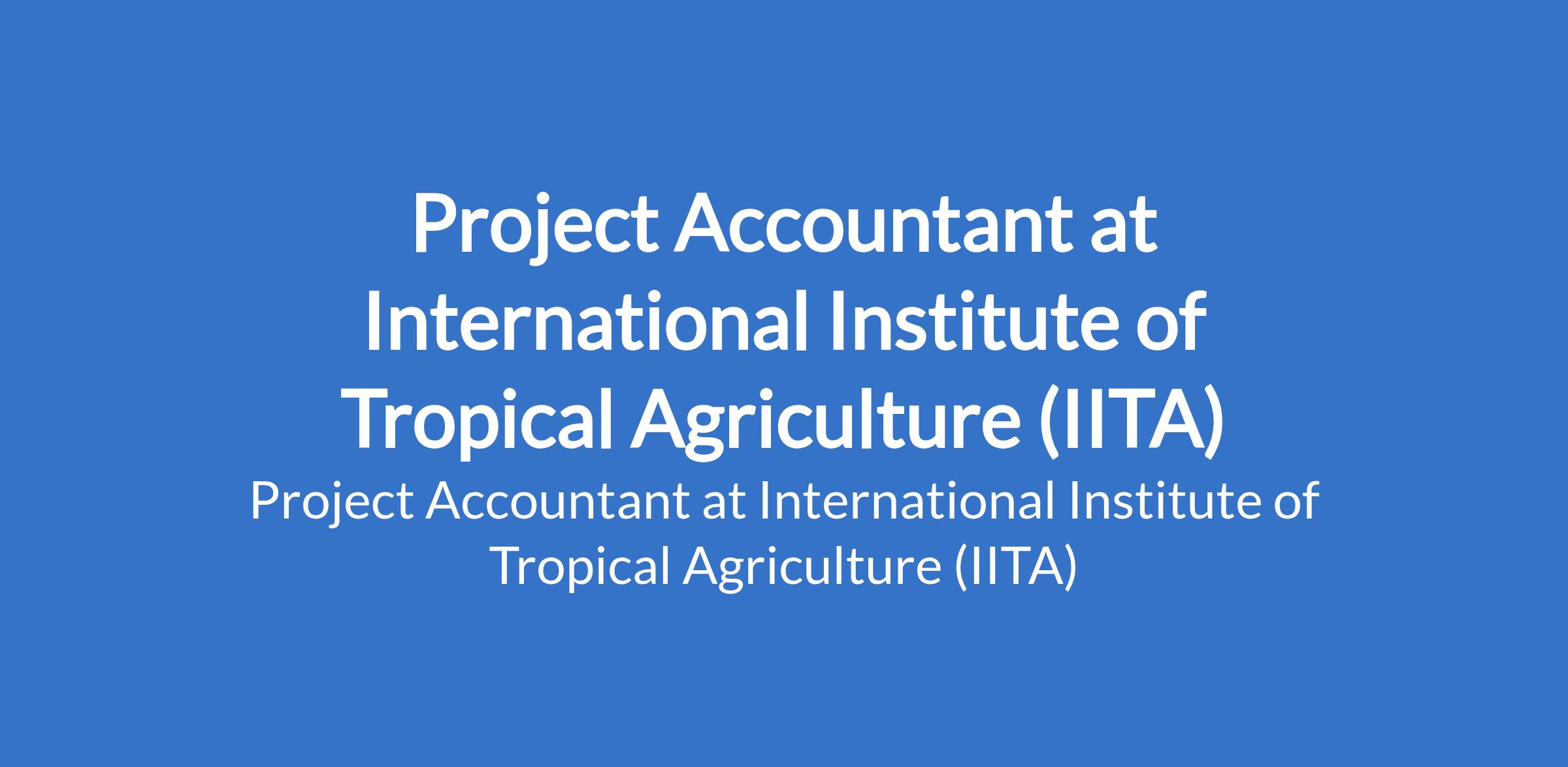 International Institute of Tropical Agriculture (IITA) is recruiting to fill the position of: Project Accountant. The position is located in Ibadan, Oyo State. Interested candidates should possess a MSc Degree in Accounting, Finance, or other relevant fields of study with a minimum of six (6) years experience performing similar role in a well-structured environment.