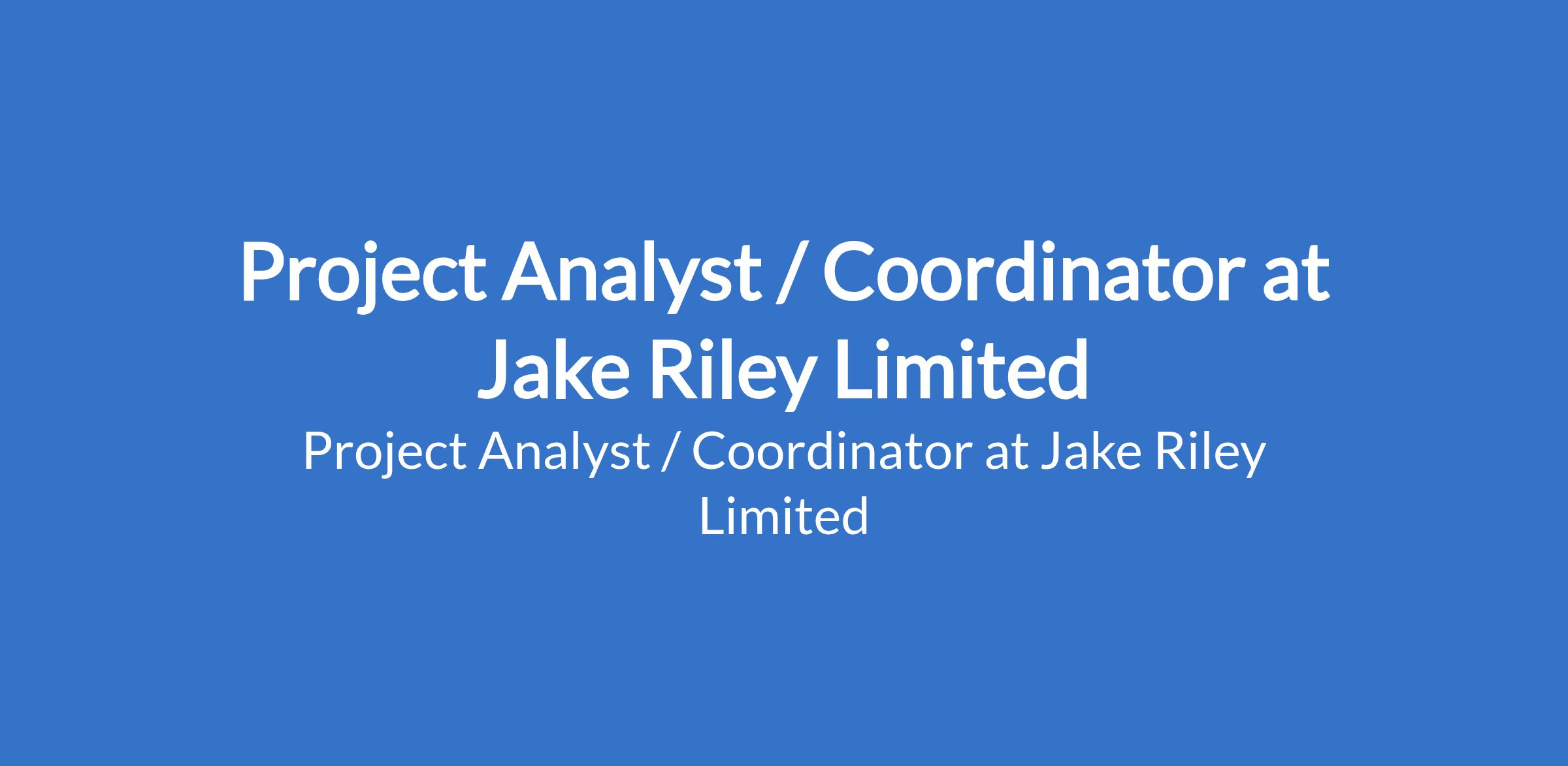 Jake Riley Limited is recruiting to fill the position of: Project Analyst / Coordinator. The position is located in Lagos State. Interested candidates should possess a relevant qualifications with 35 years of experience in consulting, project coordination, or business analysis.