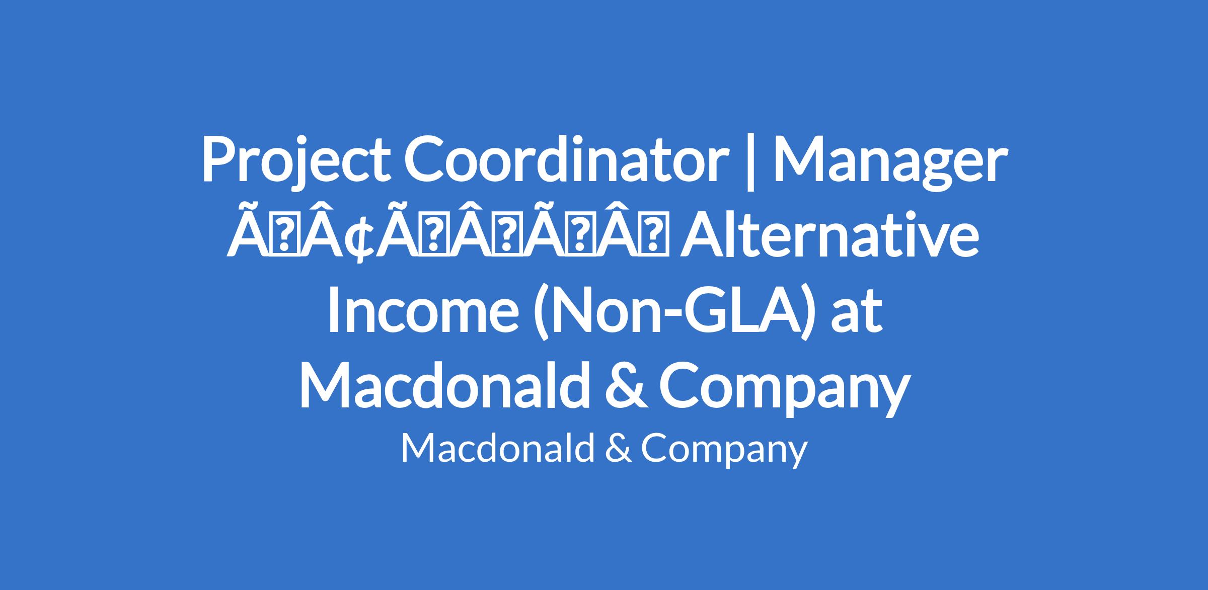 Project Coordinator | Manager âÃÂàAlternative Income (Non-GLA) at Macdonald & Company