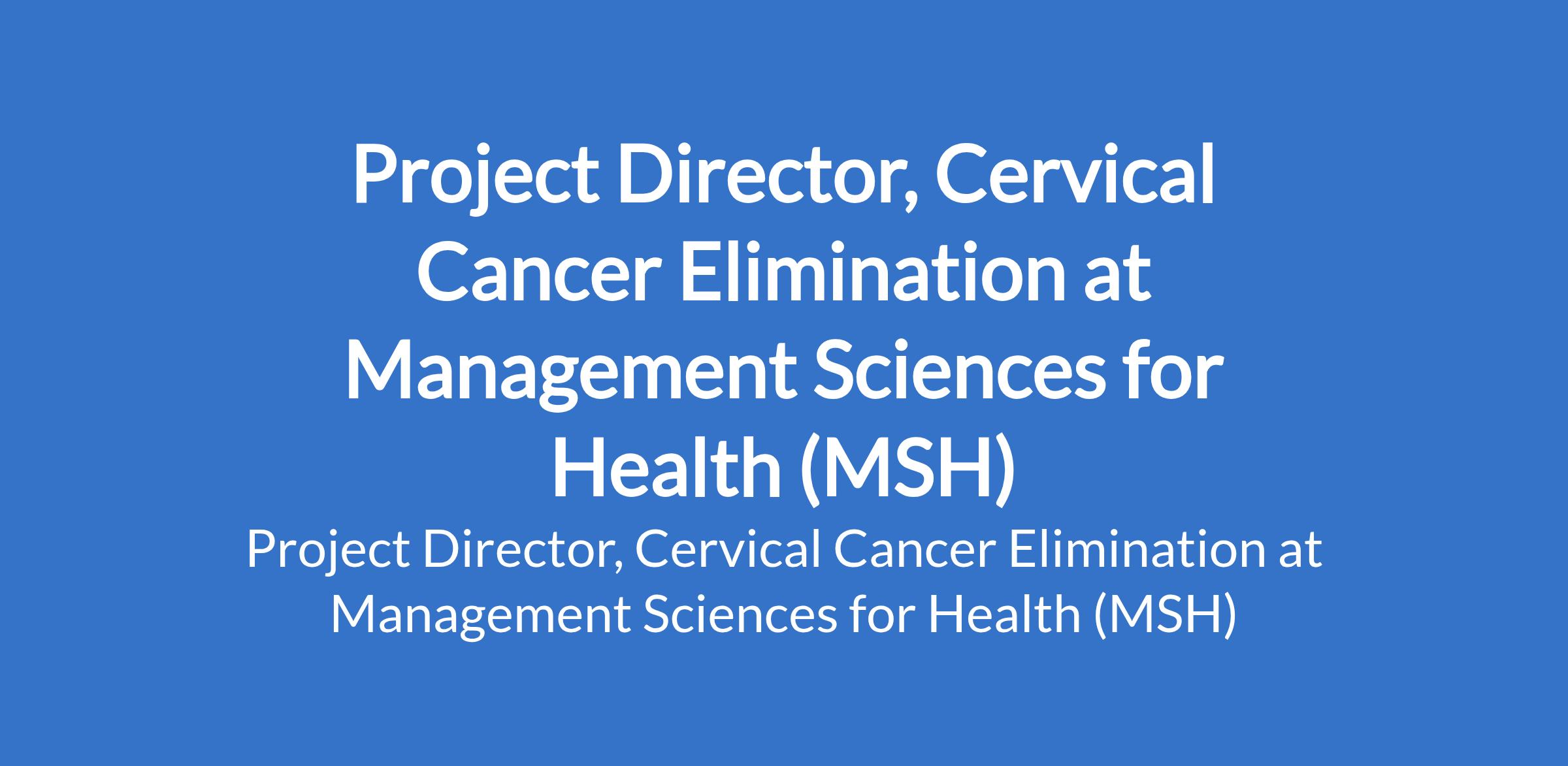 Management Sciences for Health (MSH) is recruiting to fill the position of: Project Director, Cervical Cancer Elimination. The position is located in Abuja. Interested candidates should possess an advanced Degree in Public Health, Health Systems, Global Health, Medicine, or another relevant field with proven leadership in large-scale, multi-country health programs and 8 - 10 years of progressive experience in project leadership, management, and implementation within global health or development sectors.